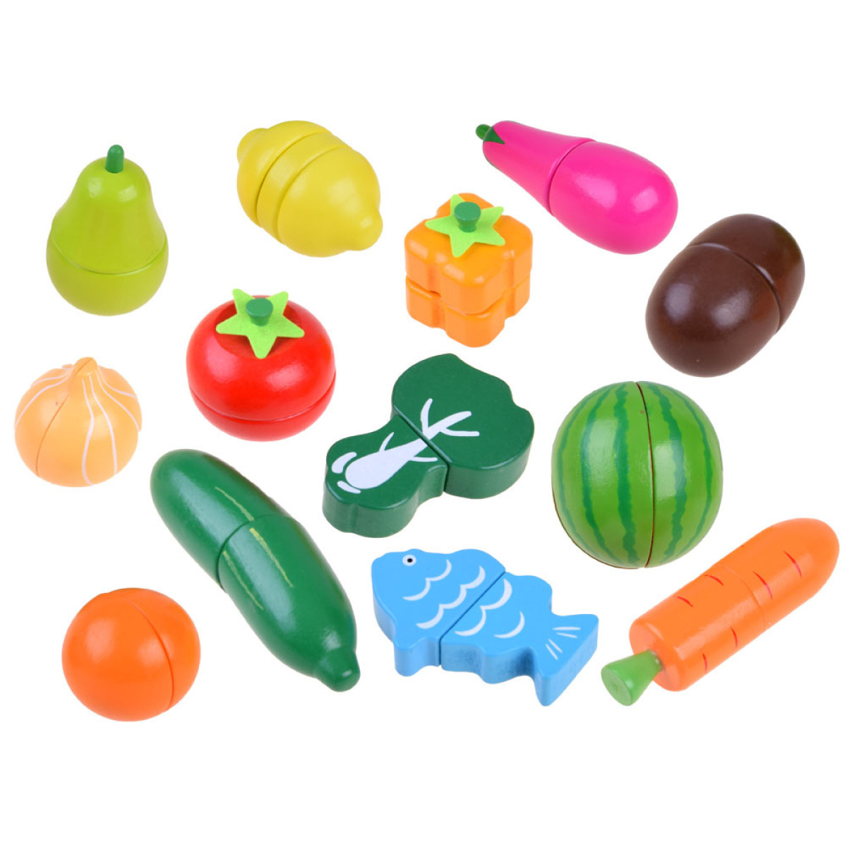 - Mācīšanās spēlējoties: komplekts palīdz bērniem iepazīt dārzeņu, augļu un zivju nosaukumus un krāsas. Tas ir lielisks veids, kā mācīt bērniem veselīgus uztura paradumus jau no mazotnes.