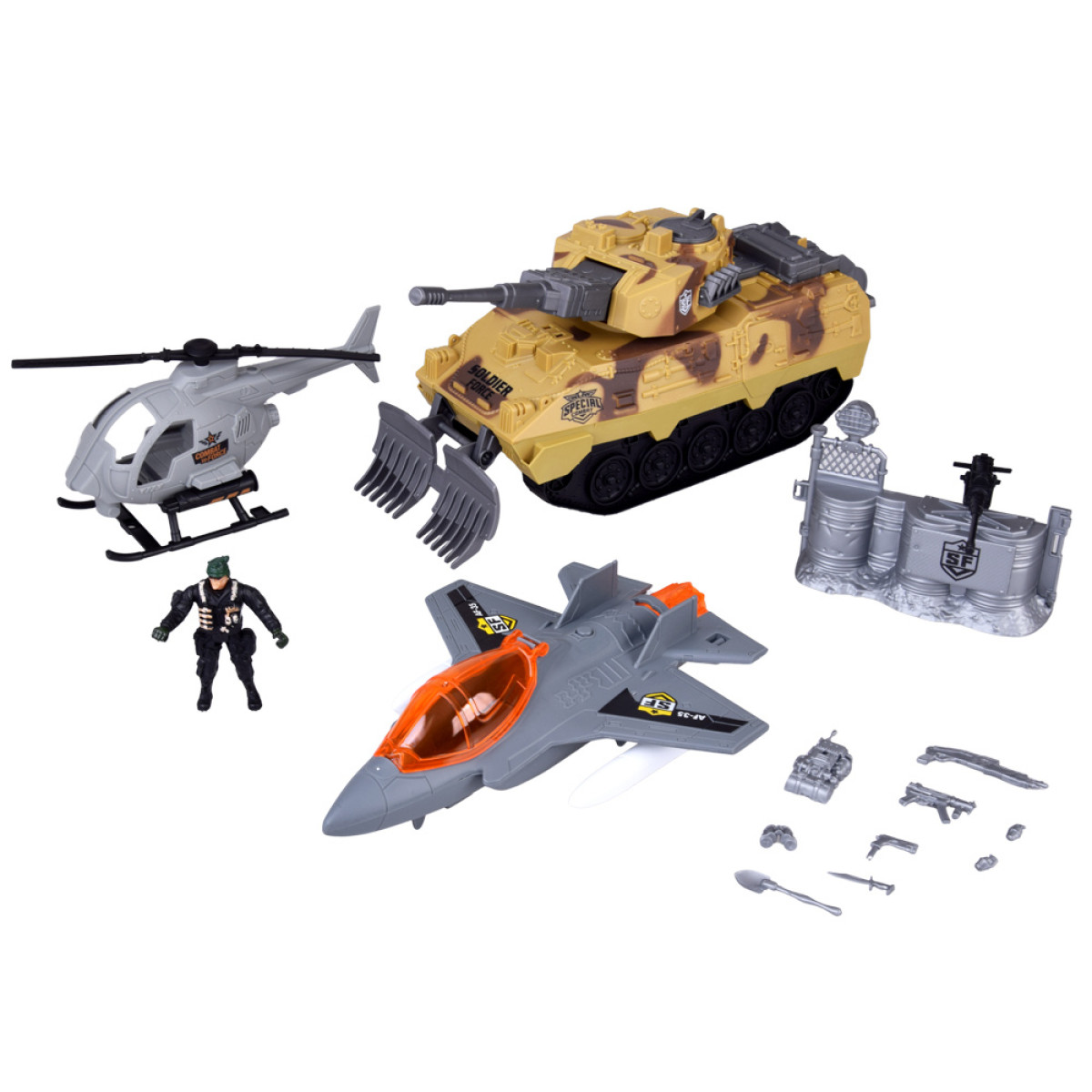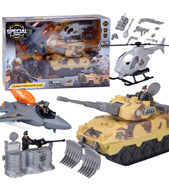 Lielais militārais komplekts tanks iznīcinātājs helikopters + karavīrs ZA5752