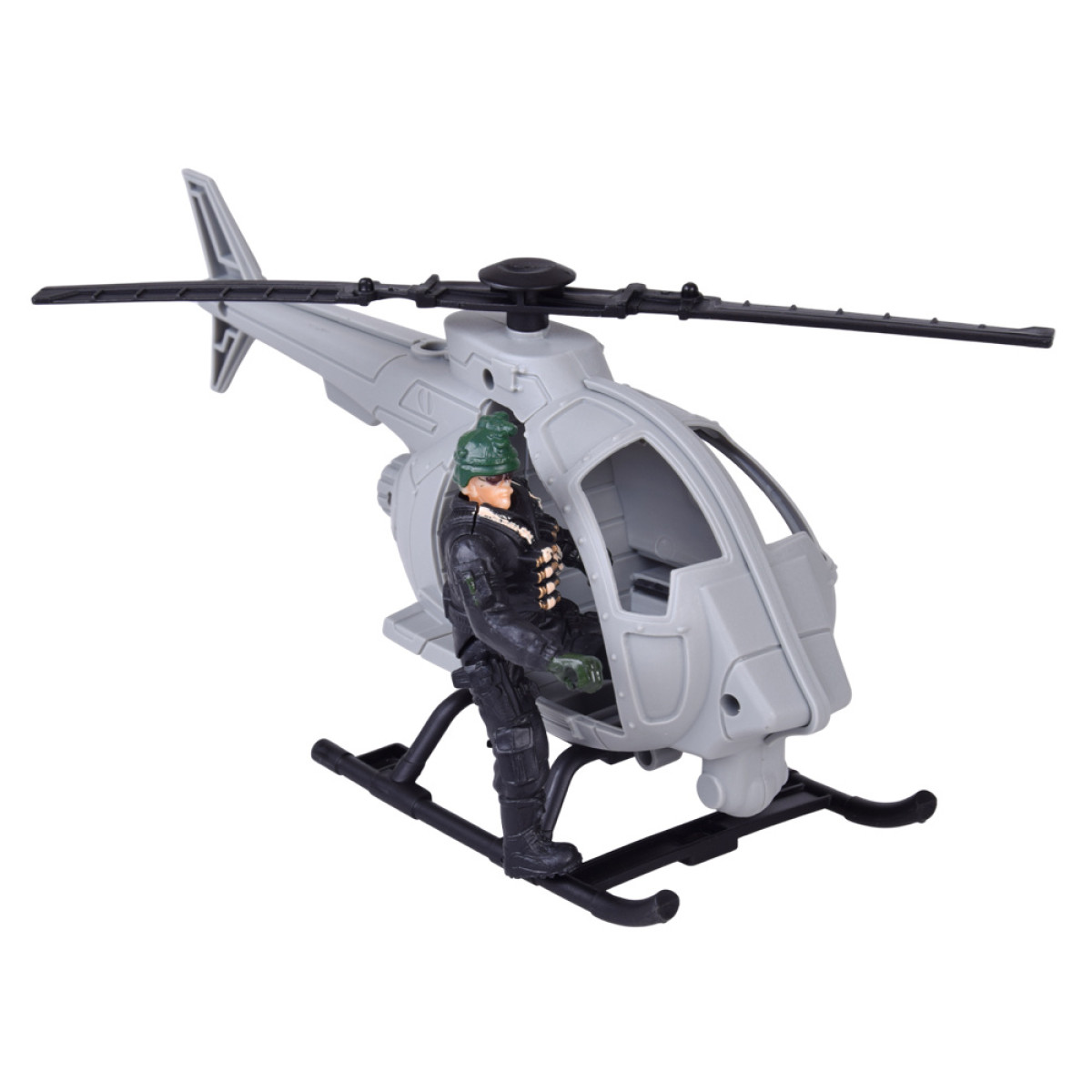 - Helikopters ar kabīni, kurā var ievietot karavīru; kustīgās rotora lāpstiņas ļauj atveidot pacelšanos un nosēšanos.