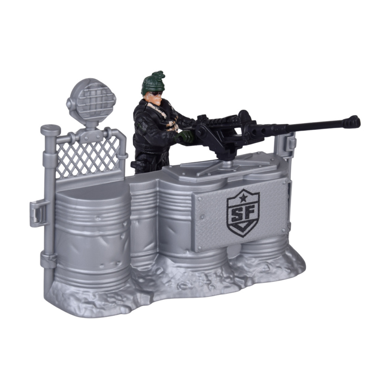 Sagatavojiet kaujas lauku savā istabā! Šis reālistiskais militārais komplekts ietver visu nepieciešamo aizraujošām misijām: tanks, helikopters, iznīcinātājs, karavīra figūriņa, šaušanas stacija, ložmetējs un bagātīgs piederumu komplekts (šautenes, pistoles, granātas, lāpsta). Katrs elements ir izstrādāts, lai nodrošinātu dinamiskas, drošas un radošas spēles.