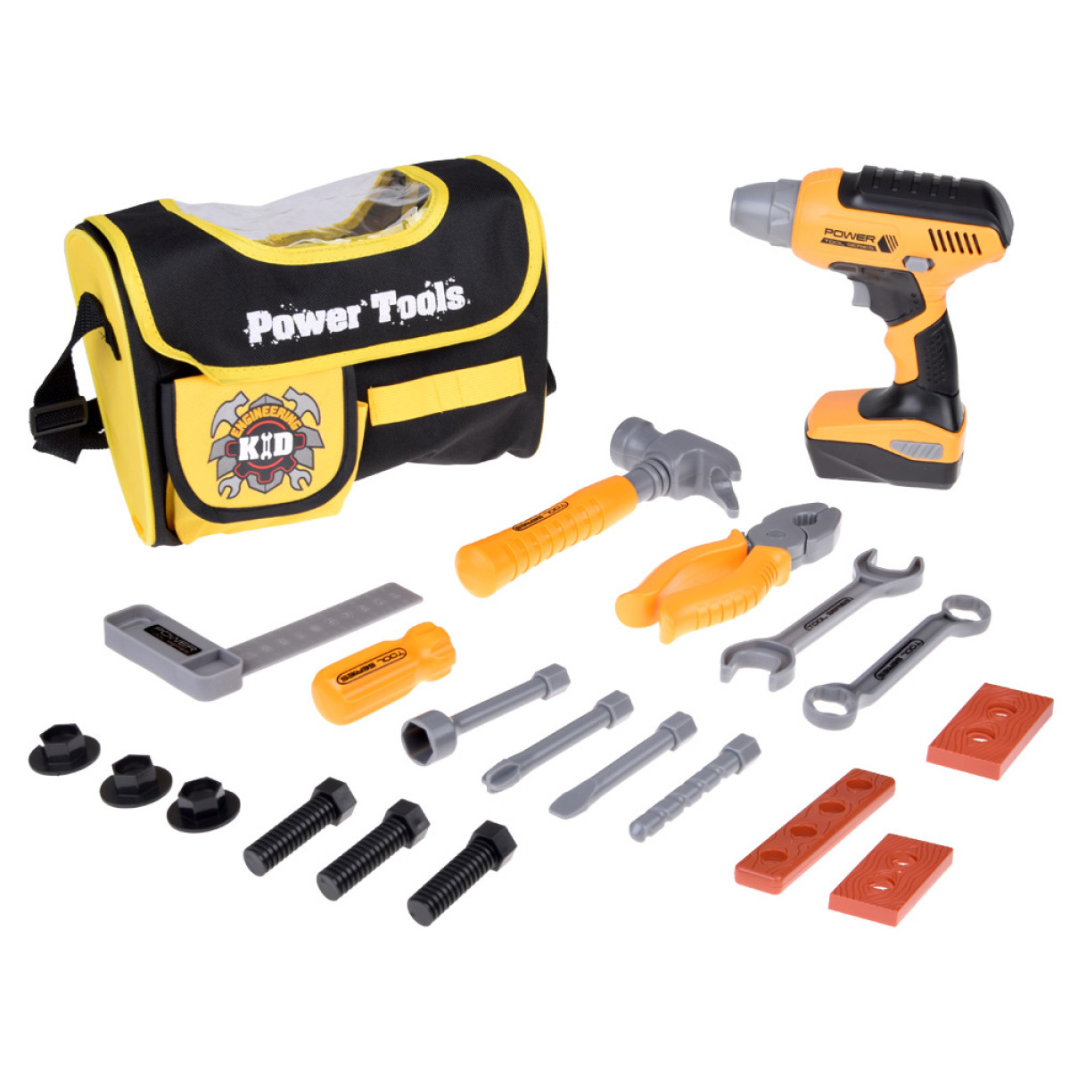 Liels instrumentu komplekts + soma bērniem ar bateriju darbināmu skrūvgriezi