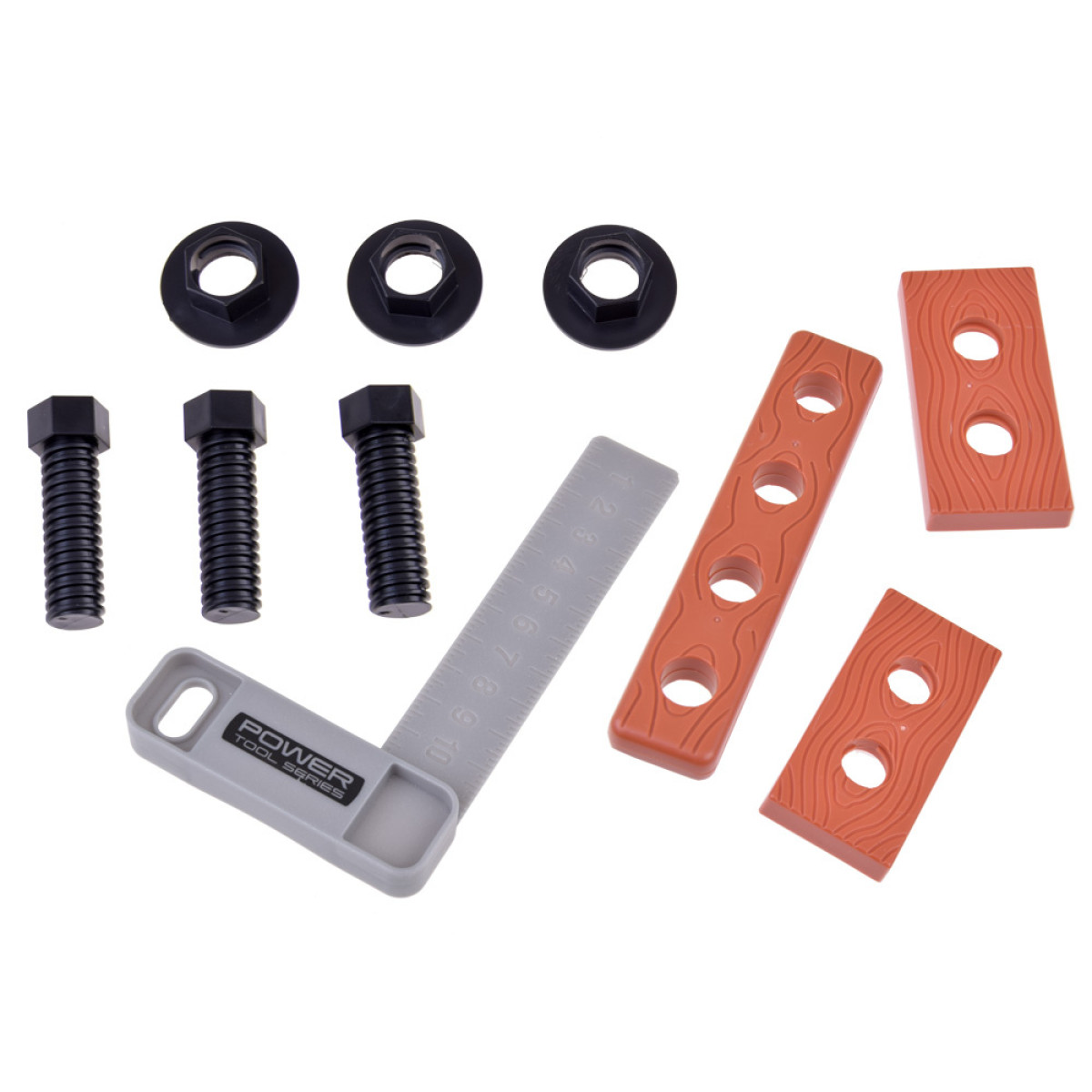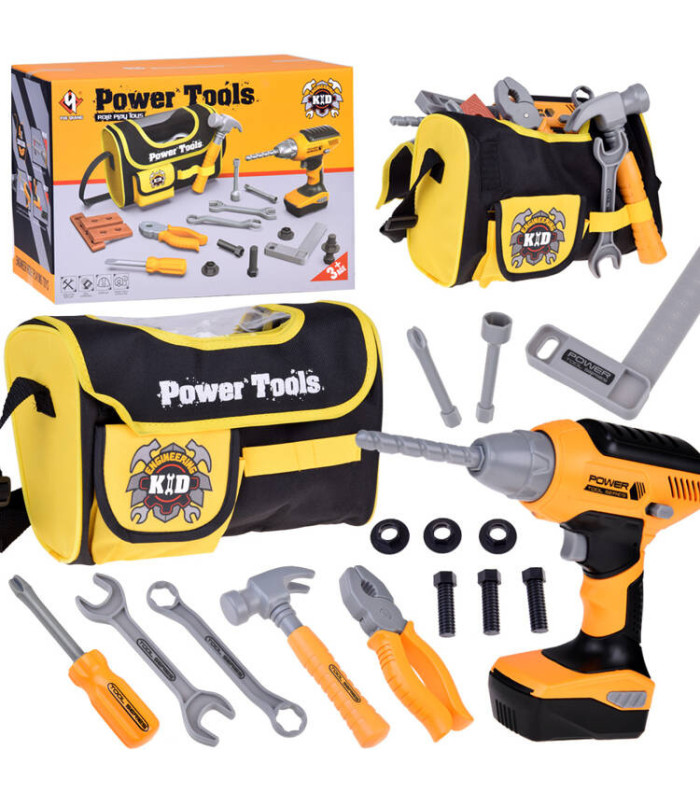 Instrumentu komplekts ērtā somā ir lieliska izvēle ikvienam mazajam meistaram. Ja jūsu bērnam patīk palīdzēt nelielos darbos vai sapņo kļūt par celtnieku, tad šis komplekts būs ideāls! Instrumenti ir izgatavoti no augstas kvalitātes plastmasas un ir pilnīgi droši bērnam. Turklāt skrūvgriezis darbojas ar baterijām, tāpēc spēle ir ļoti reālistiska. Skrūvgriezis darbojas kā īsts, nodrošinot skaņas un gaismas efektus. Pabeidzot spēli, vienkārši ielieciet tos ietilpīgā somā, lai pārliecinātos, ka tie netiks pazaudēti un varēsiet tos viegli pārnēsāt. Komplektā ietilpst: ietilpīga soma, skrūvgriezis ar baterijām, 3 maināmi uzgaļi, āmurs, skrūvgriezis, knaibles, atslēga, mērlente, 2 skrūves, 2 uzgriežņu uzlikas un 3 plastmasas dēlīši. Skrūvgrieža barošana: 3 x AAA baterijas (nav iekļautas).