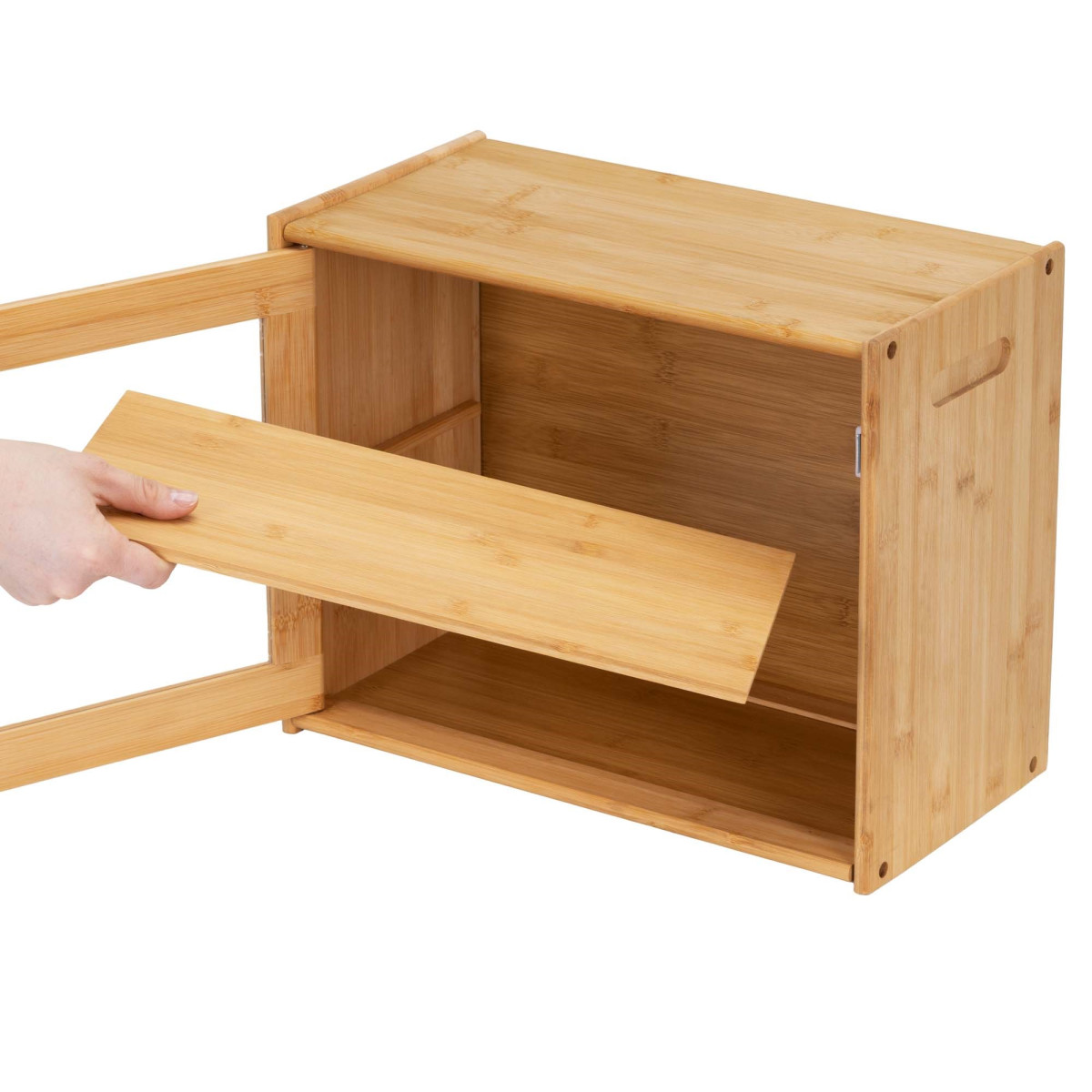 Šī divlīmeņu bambusa maizes kaste ir praktisks papildinājums jebkurai virtuvei, apvienojot funkcionalitāti, estētiku un svaigumu. Izgatavota no dabīga bambusa, tā lieliski papildina dabīgas virtuves estētiku, vienlaikus saglabājot izturību un noturību pret ikdienas lietošanu. Divi neatkarīgi līmeņi nodrošina kārtību: maizi, maizītes, cepumus vai citus ceptus izstrādājumus var uzglabāt atsevišķi, samazinot nekārtību un atvieglojot satura izvēli. Slēgtā konstrukcija aizsargā maizi no izžūšanas un putekļiem, palīdzot ilgāk saglabāt svaigumu un garšu.