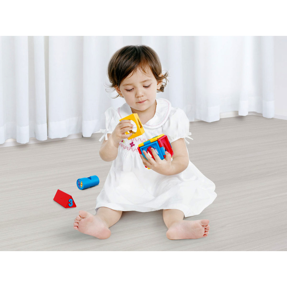 Pareizā forma: Divu gadu vecumā bērns sāk izprast formas un atšķirt dažādu izmēru priekšmetus. Šī rotaļlieta palīdzēs bērnam apgūt pamatformas un radīs interesi par ģeometriskajiem priekšmetiem. Figūru ievietošana atbilstošajos caurumos prasa loģisku domāšanu un veicina bērna iztēli, tādējādi attīstot telpisko apziņu.