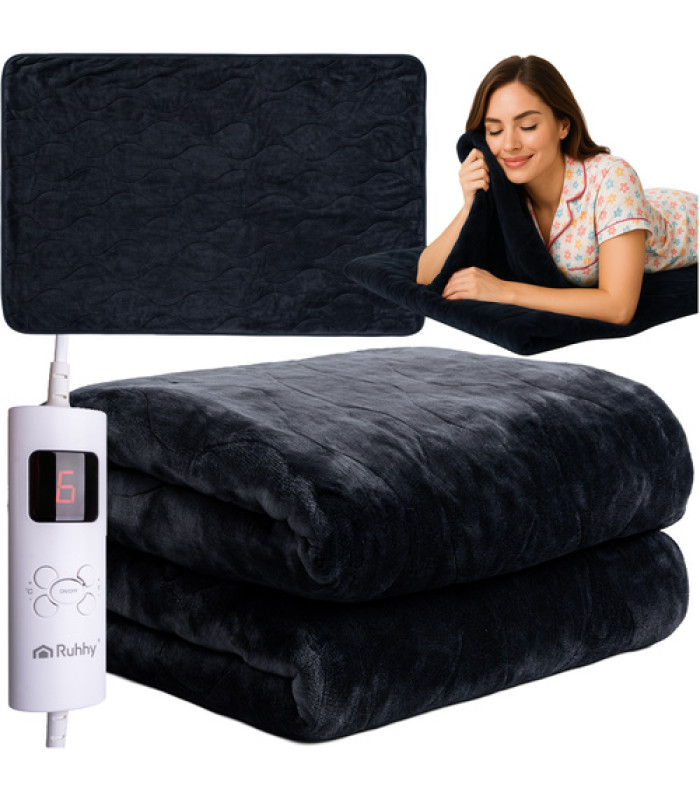 Elektrinė antklodė, šildymo kilimėlis, minkštas, šildomas, didelis dvigulis 180 x 130 cm, 6 režimai + nuotolinio valdymo pultas RUHHY - šilumos technologija, kuri apgaubia ir atpalaiduoja