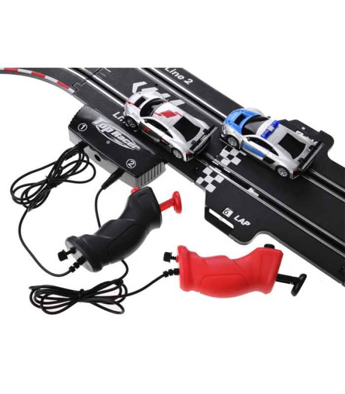 Ypač ilga automobilių lenktynių trasa yra kiekvieno mažo ralio ir automobilių lenktynių gerbėjo svajonė. Iki 8 m ilgio trasa su dviem automobiliais, ekstremaliomis kilpomis ir posūkiais suteiks daug jaudulio smagiai leidžiant laiką. Yra pidėti du itin greiti -quot;Audi-quot; licencijuoti automobiliai, pagaminti atkreipiant dėmesį į detales. Bėgių kelią valdo nuotolinio valdymo pultas su dujų funkcija, kuris turi būti prijungtas prie stoties, esančios trasoje. Žaislui nereikia baterijų, transporto priemonės maitinamos maitinimo šaltiniu.