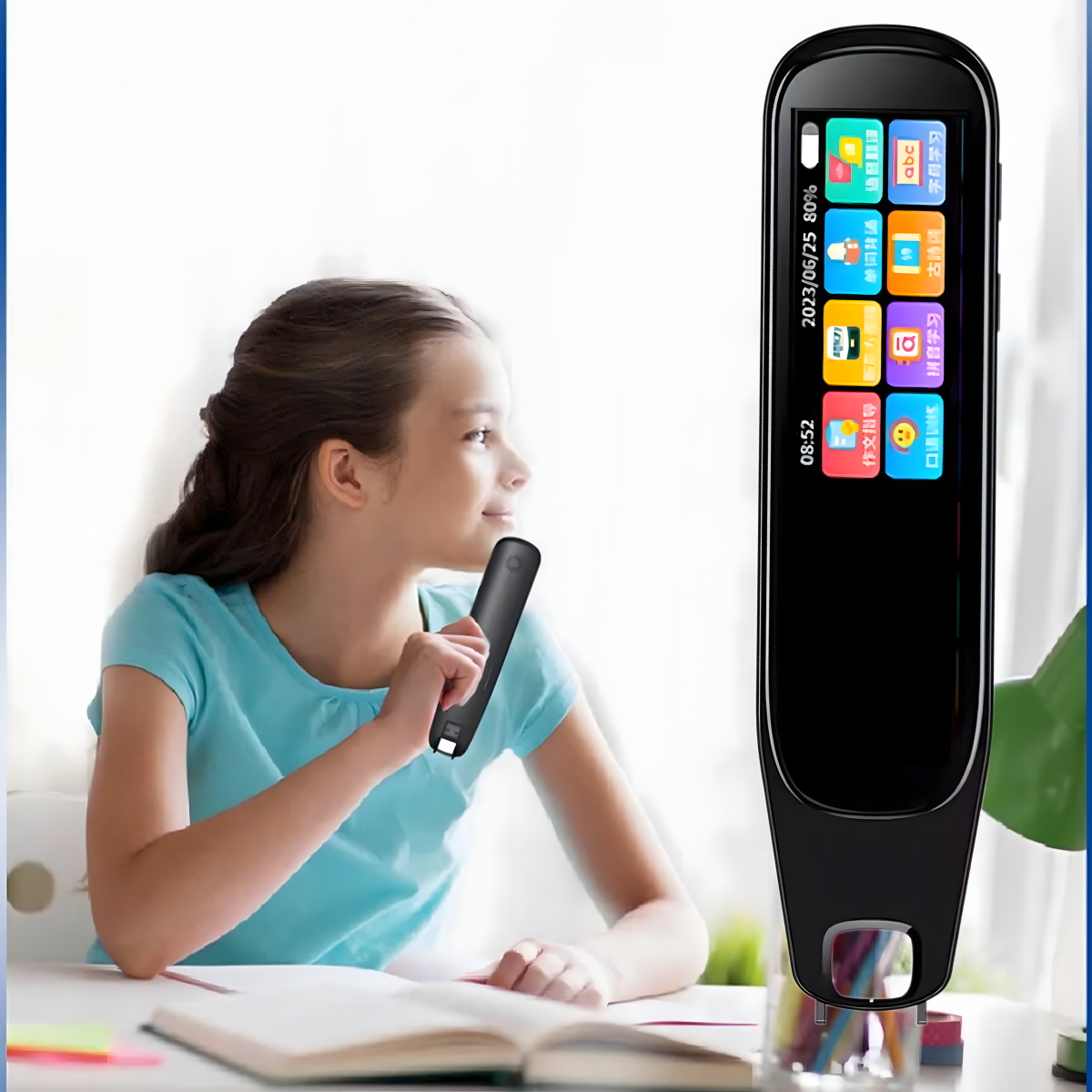 Inteliģentā tulkošanas pildspalva ir moderns elektroniskais teksta un runas tulkotājs, kas atbalsta līdz 132 valodas. Tā nodrošina ātru runas un rakstīto tekstu tulkošanu reāllaikā. Aprīkota ar skārienjutīgu ekrānu, OCR funkciju, izrunas atpazīšanu un skaņas ierakstīšanu – ideāli piemērota ceļotājiem, studentiem, skolotājiem un starptautiski strādājošiem profesionāļiem. Nepieciešams interneta savienojums.