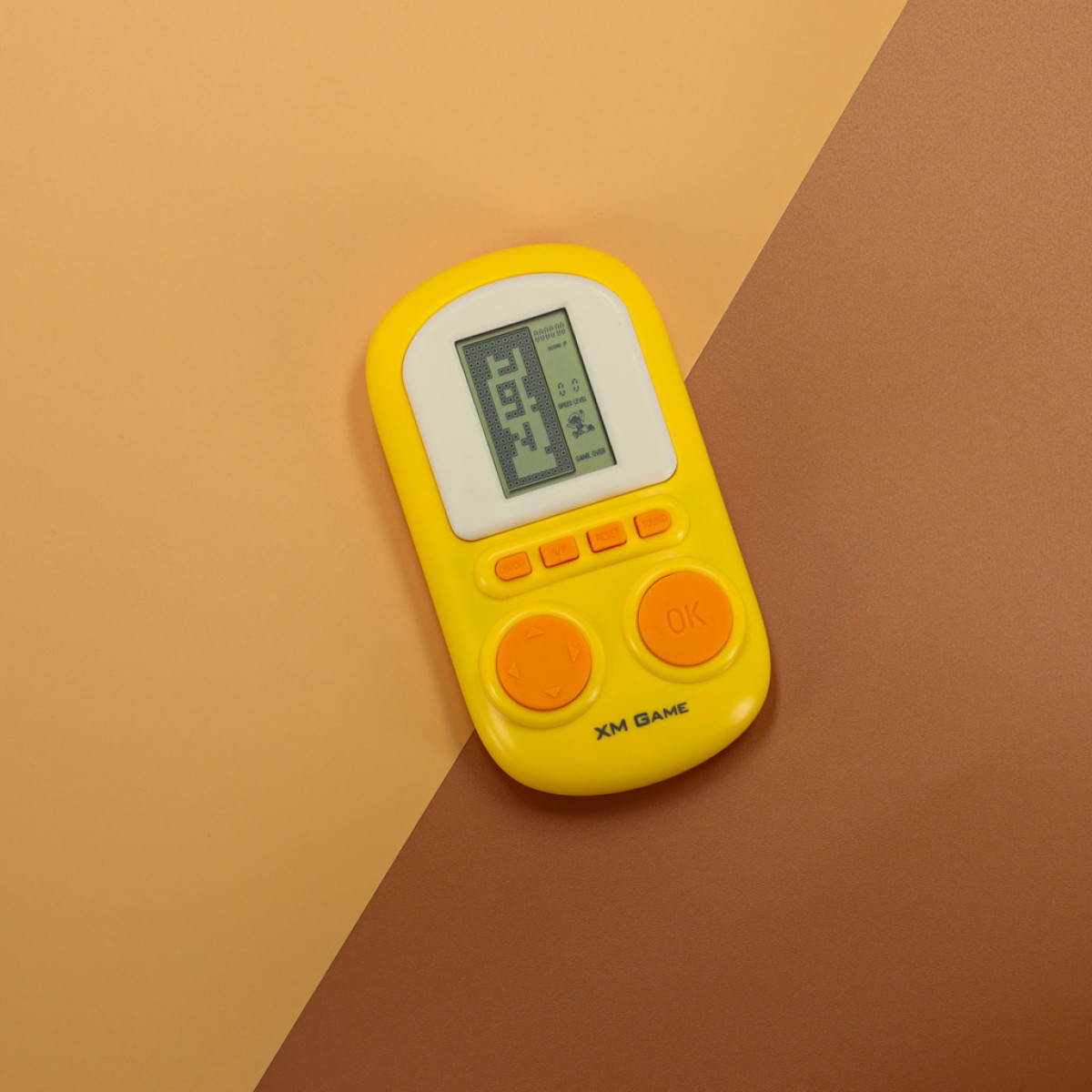 Elektroniska prasmju spēle portatīvajā konsolē dzeltenā krāsā