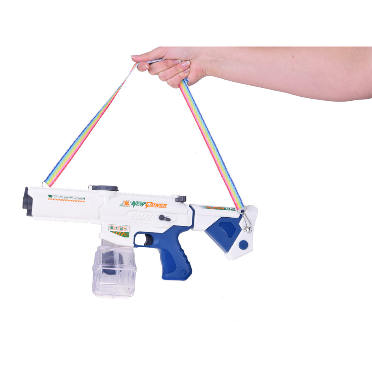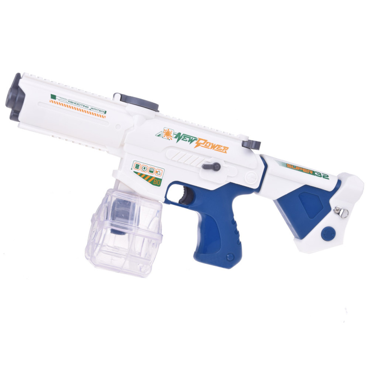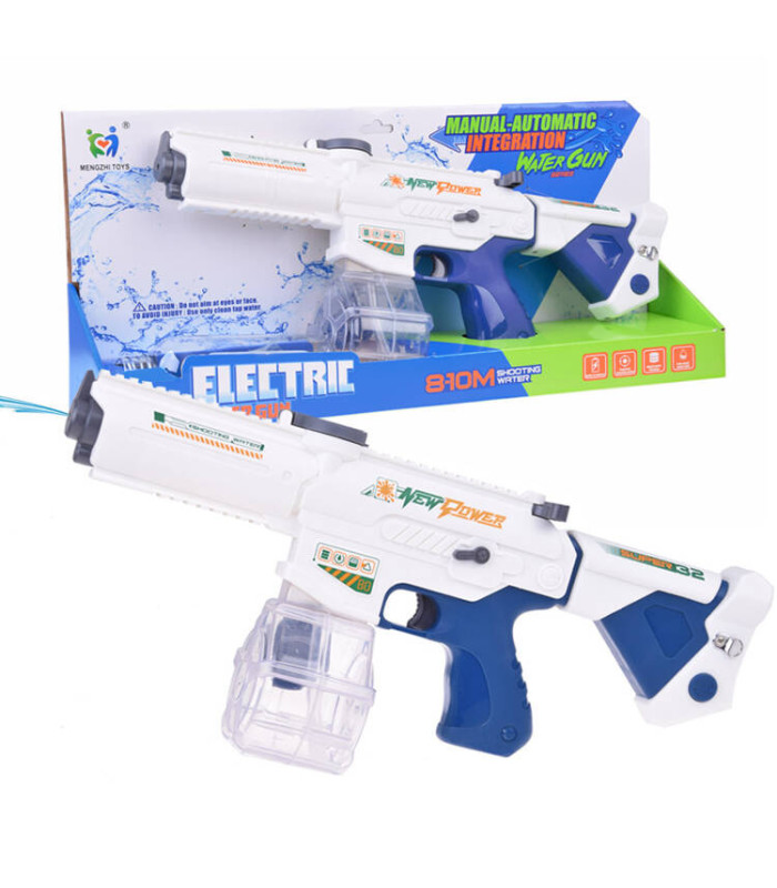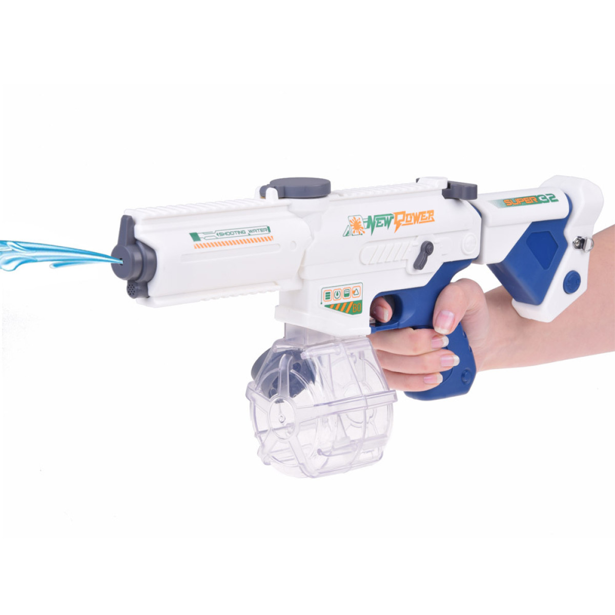 - vienkārši pabīdiet pogu virs sprūda atpakaļ, lai baudītu pilnībā elektrisku pistoli, kas izšauj ūdens strūklu, bez nepieciešamības sūknēt vai pārlādēt - vienkārši nospiediet sprūdu!