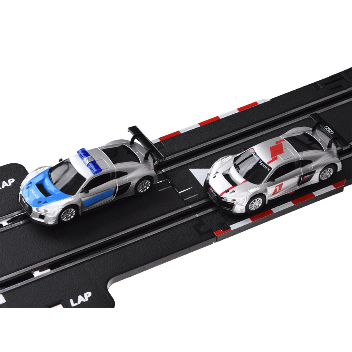 Ilgā trase ir katra auto sacīkšu fanu sapnis. 8 metru garā trase ar divām automašīnām, ekstrēmām cilpām un līkumiem sniedz daudz emociju spēles laikā. Divas ātras Audi automašīnas ir izgatavotas ar lielu uzmanību detaļām, un viss komplekts izskatās ļoti iespaidīgi.