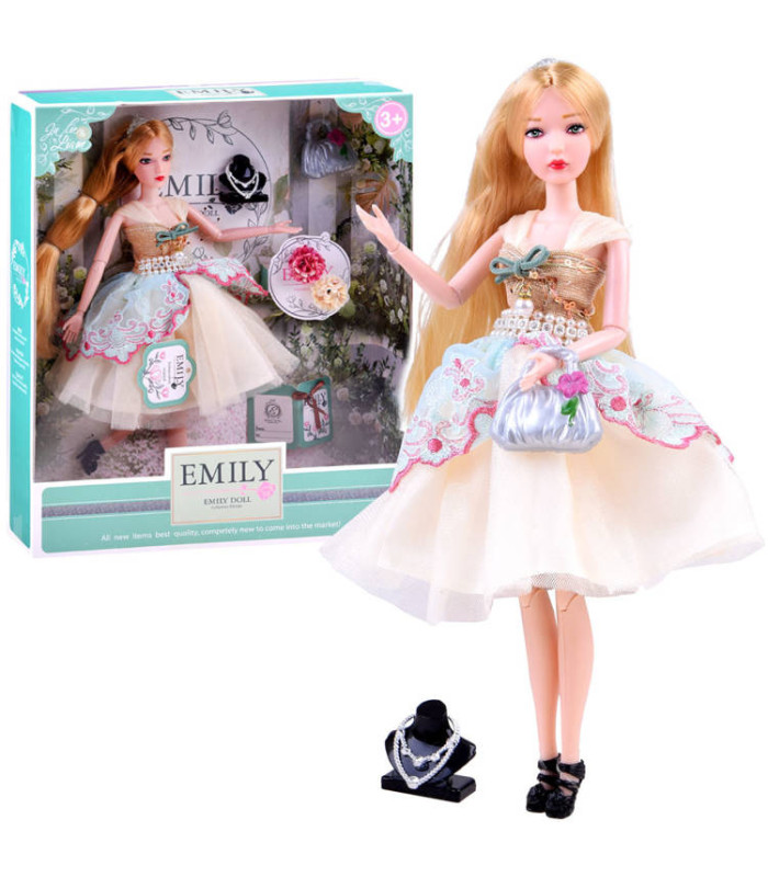 Emily lelle kokteiļkleitā ir gara, gaišmataina blondīne ar diadēmu uz galvas. Emily ir ģērbusies kokteiļkleitā ar pērļu aplikācijām un tilla volāniem, kas piešķirs šarmu jebkurai dzimšanas dienas svinībai, kā arī lācīšu un citu leļļu ballītēm. Lellei ir locītavas elkoņos, plaukstās un ceļos. Viņai ir gari mati, diadēma uz galvas, kā arī valkā burvīgu, vieglu kleitu un kurpītes ar papēdi. Emily lelle var kļūt par labāko draudzeni, uzklausīs visus noslēpumus, klausīsies pasakas un labprāt dosies uz bērnudārza balli vai dzimšanas dienas svinībām.