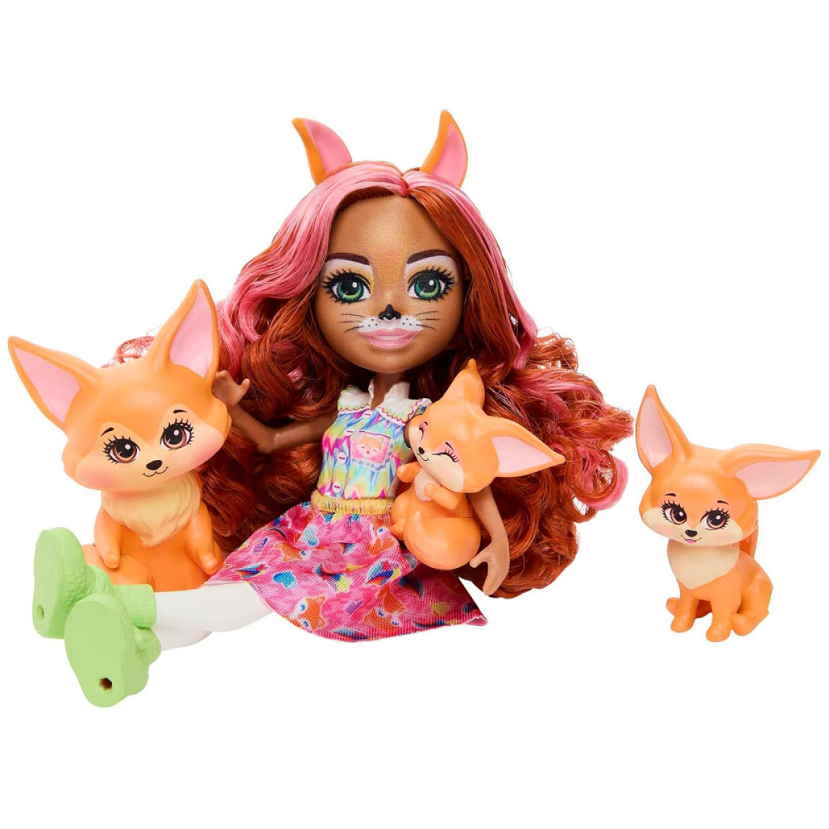 Enchantimals lelle Filigree Lapsa ar draudzeni Perk™ un viņas ģimeni ir ideāls komplekts katrai šo mazo, burvīgo lellīšu un viņu mīluļu fanei. Komplekts no sērijas Glam Party, kas ir nozīmīgs modes notikums, kurā aicināti visi meža draugi, kas vienmēr lieliski pavada laiku ar saviem mīļajiem dzīvnieciņiem, piedzīvojot dažādas brīnišķīgas piedzīvojumus un stāstus. Šis komplekts noteikti aizraus ne vienu vien šo jauko būtņu fanu. 15 cm lelle ir ar sarkaniem, viļņotiem matiem un rozā šķipsnām, uz galvas tai ir izceļošās ausis, oriģināls tops (iebūvēts), rozā svārki un zaļi apavi, kā arī, protams, aste. Lellei ir kustīgas locekļi. Viņai pievienojas draudzene Perk ar savu lapsu ģimeni Sandiju un Nosheru.