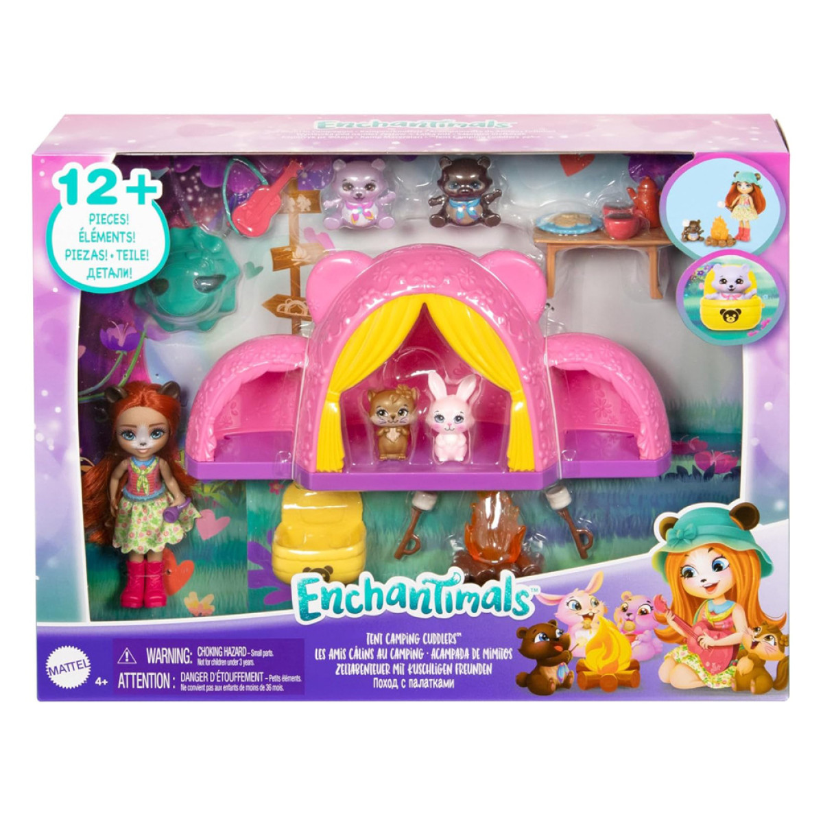 Enchantimals Telts Kempinga Komplekts noteikti patiks ikvienai šo burvīgo leļļu un viņu pūkaino draugu fanei! Šoreiz Enchantimals lelle aizved savus mājdzīvniekus uz kempingu! Kādi piedzīvojumi viņus gaida? Viss ir atkarīgs no mūsu iztēles! Varbūt viņi sēdēs pie ugunskura, cepot zefīrus ar ģitāru rokā? Vai varbūt dosies meklēt pazudušu dzīvnieku?