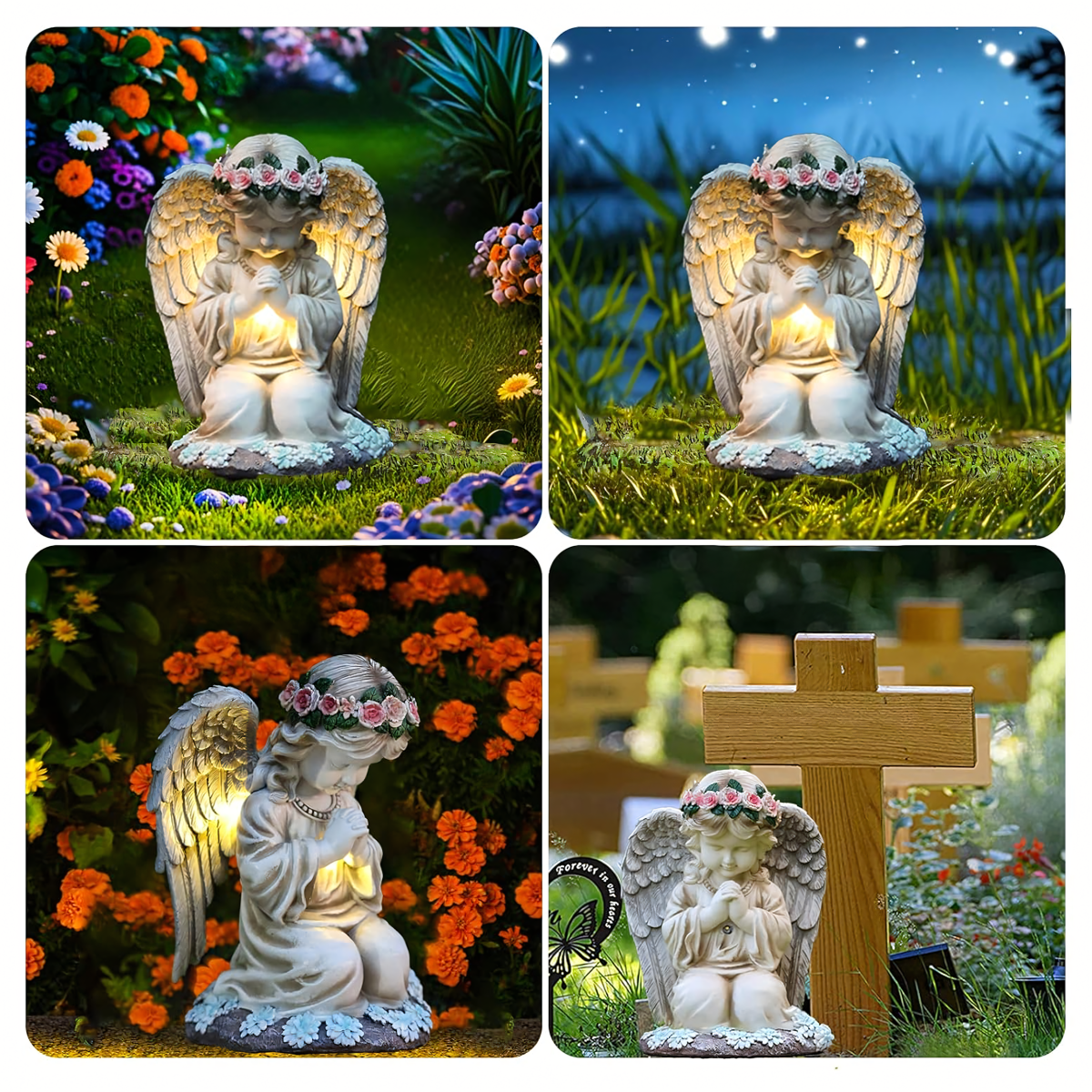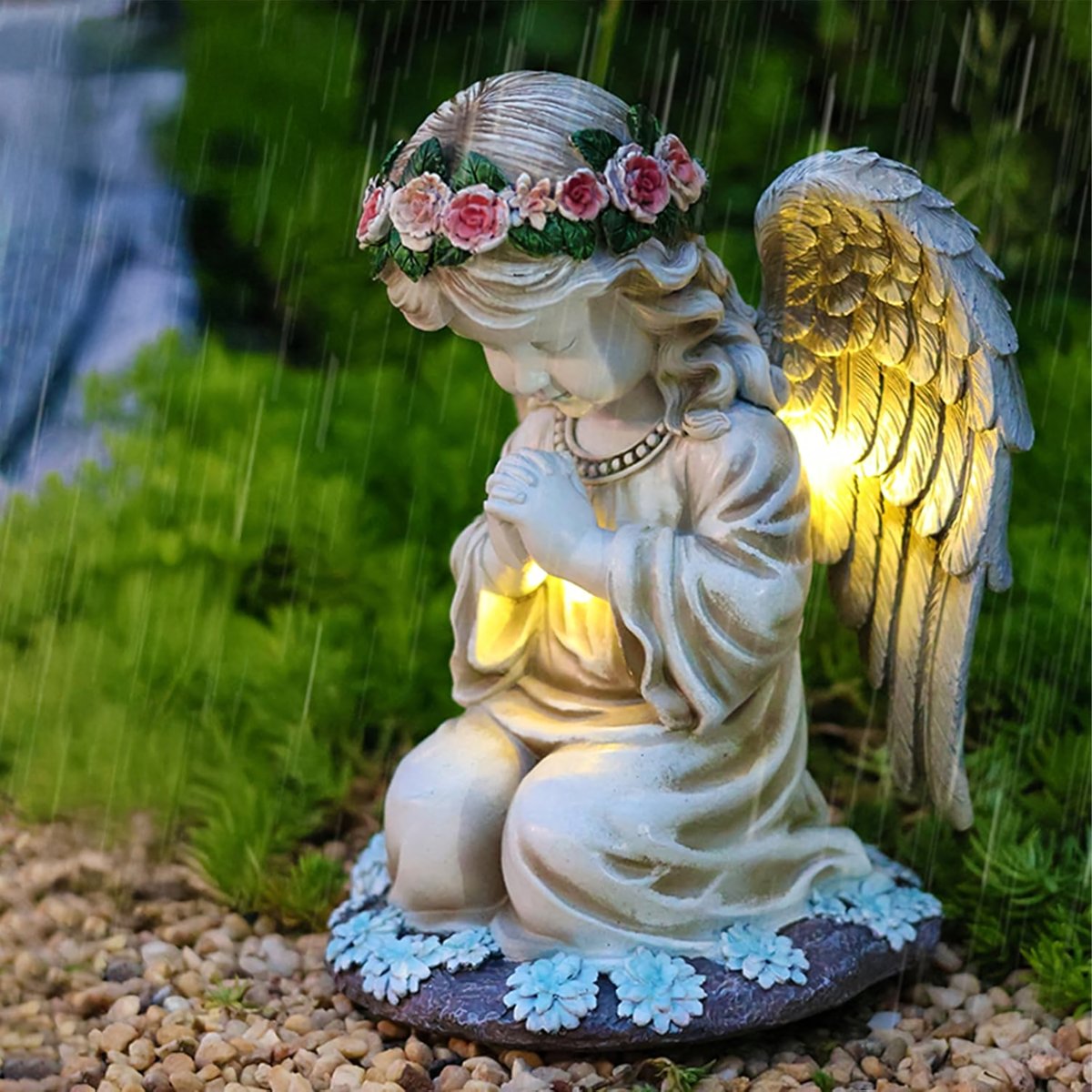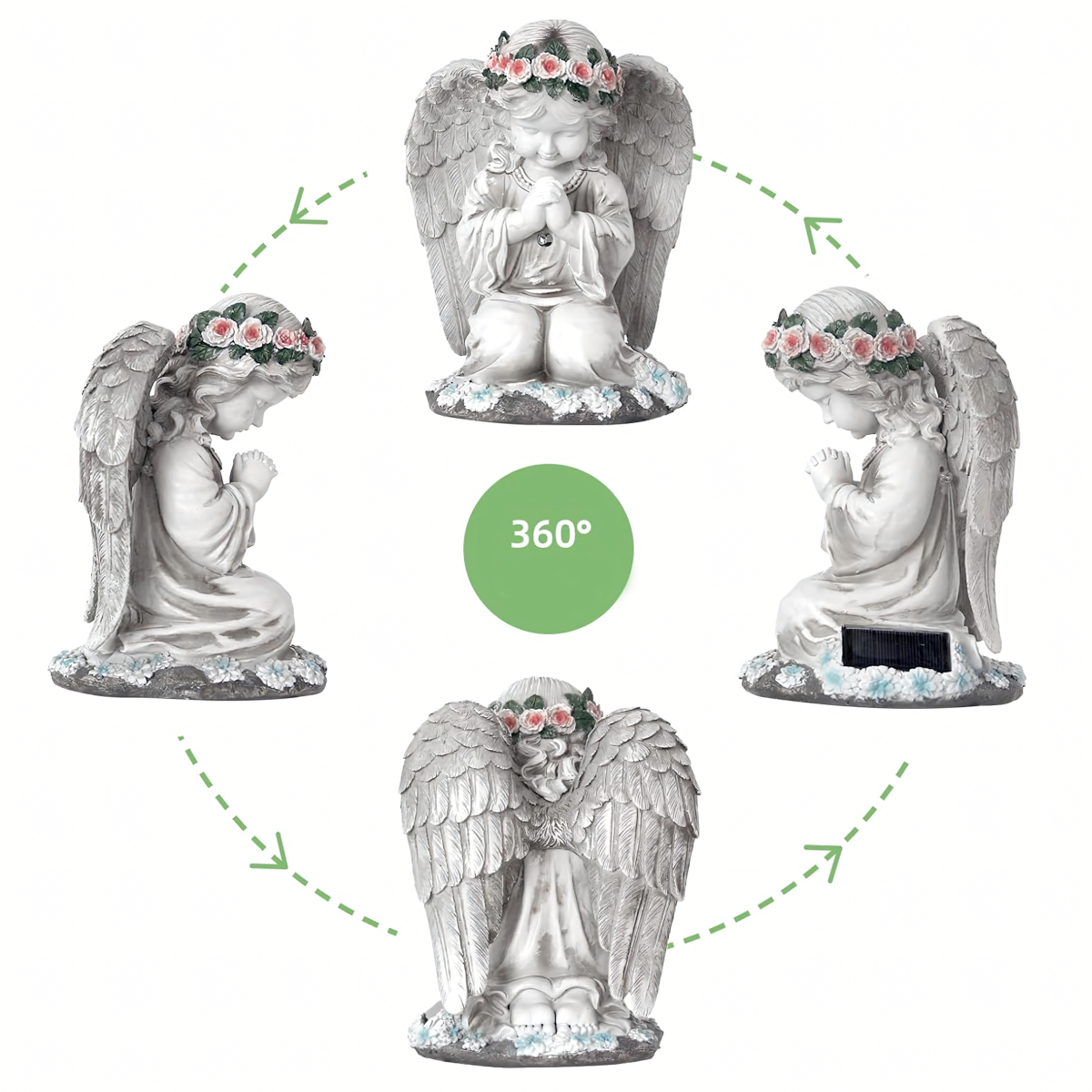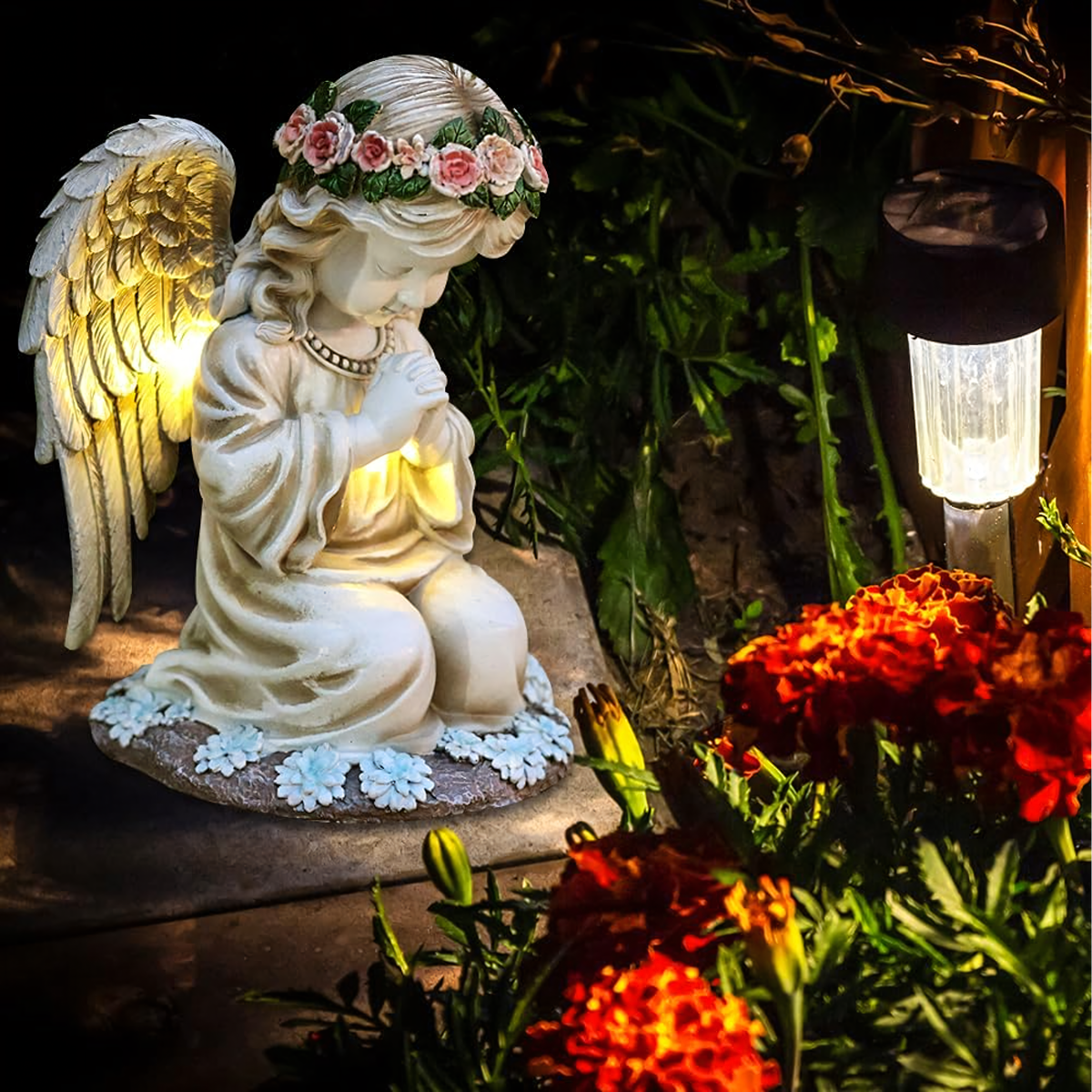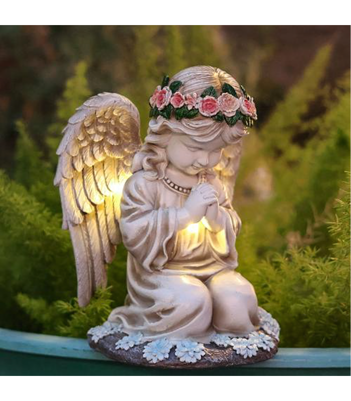 Figūra svečturis eņģelis dekorācija statuete eņģelītis ar saules LED apgaismojumu dārzam.