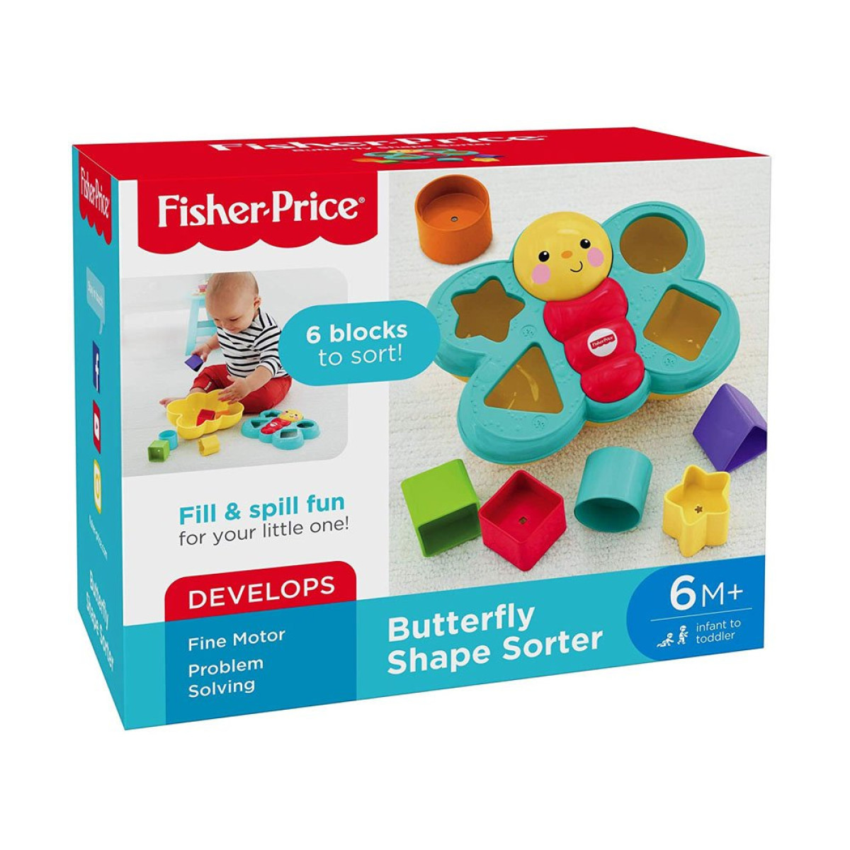 Fisher-Price tauriņš formu šķirotājs ir rotaļlieta, kas māca caur spēli.