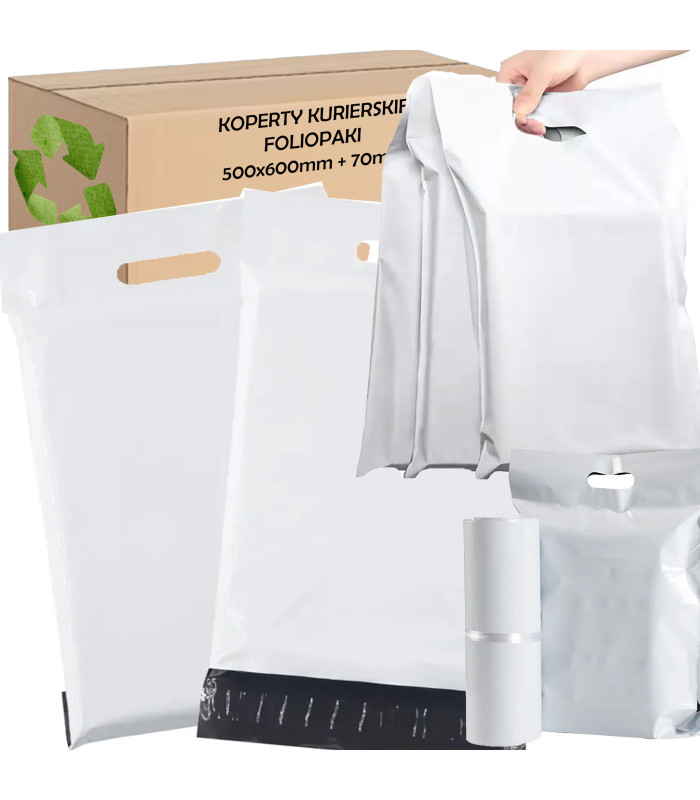 Balti kurjeru folijapaketi ar rokturi 500x600+70 50 gab.