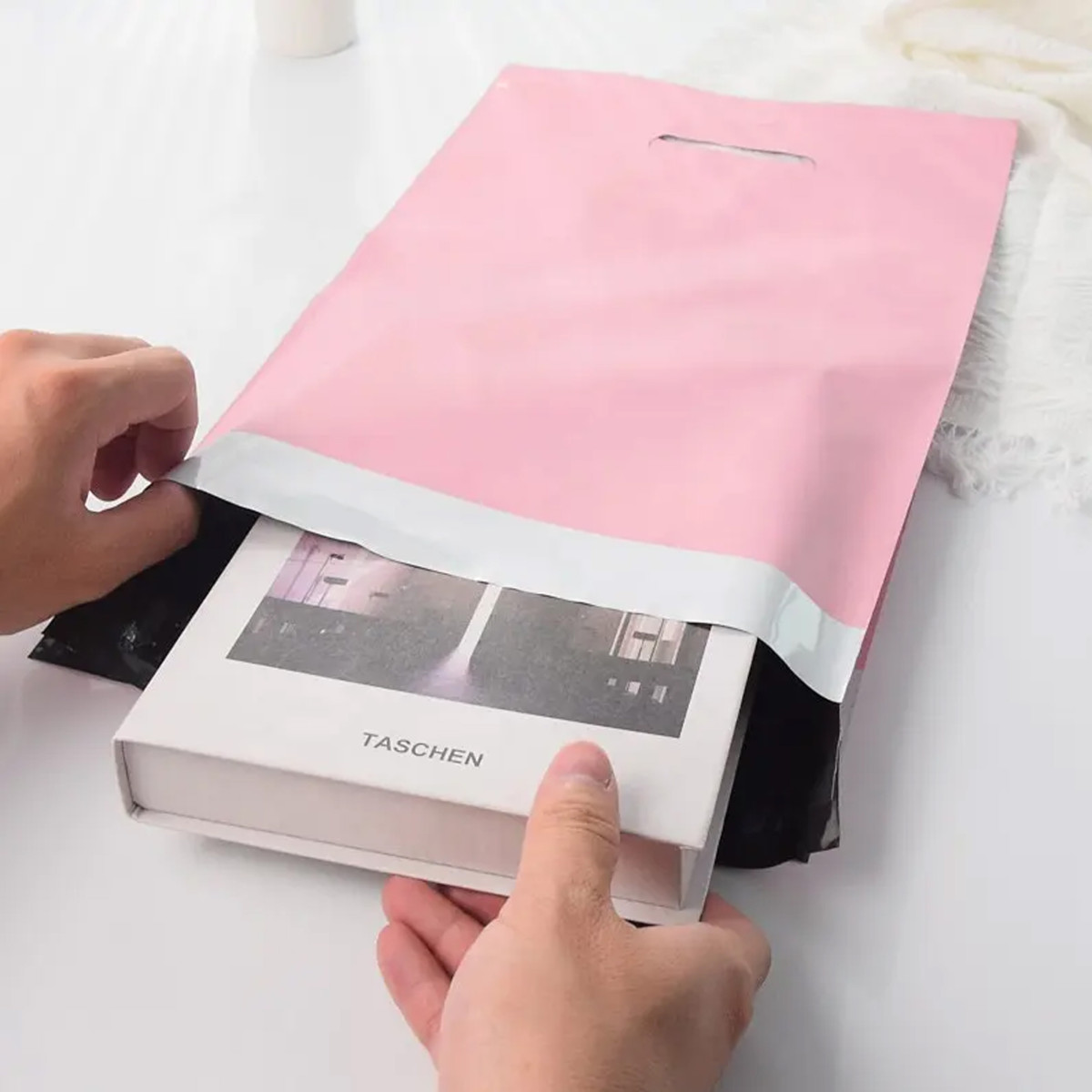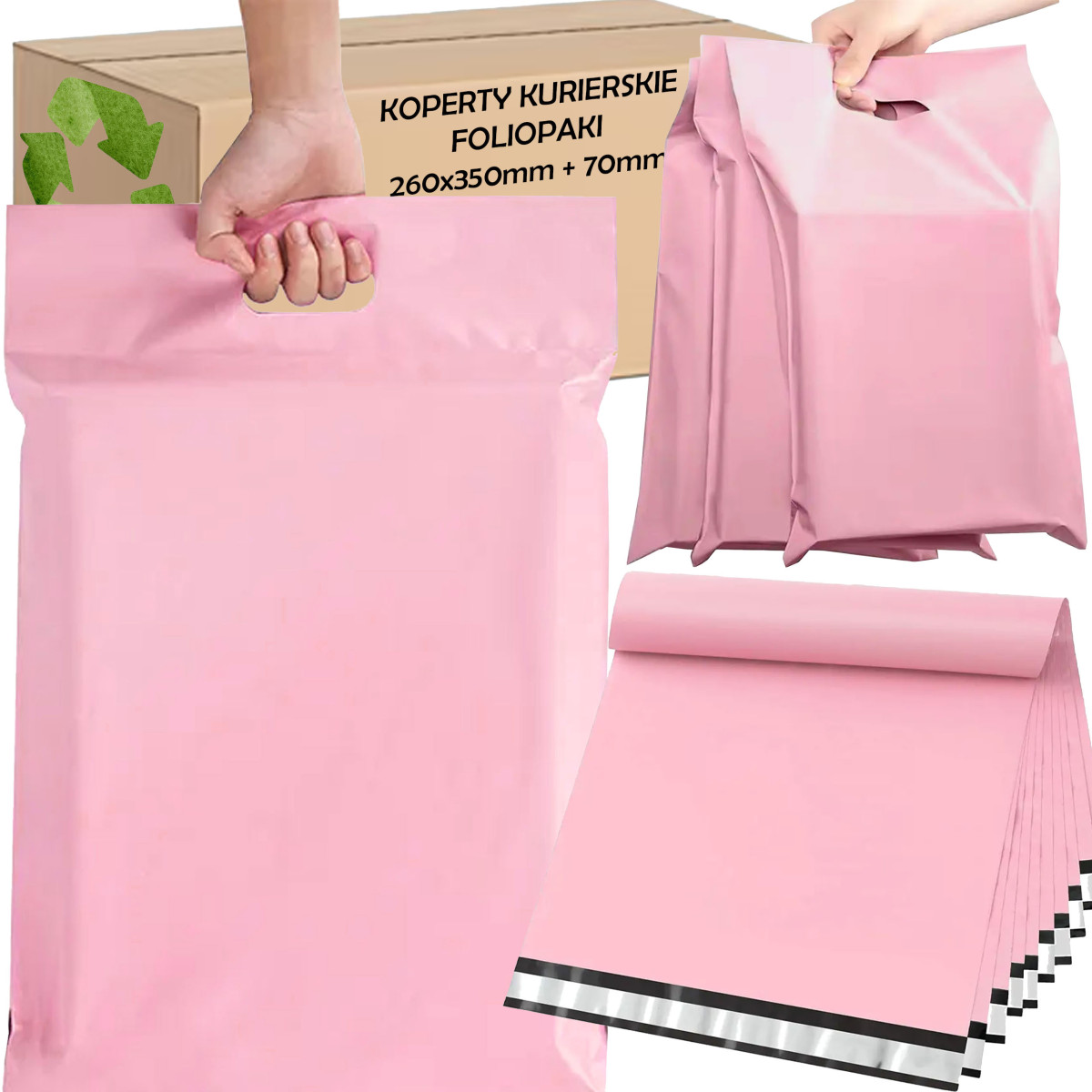 Rozā kurjeru maisiņi ar rokturi ir praktisks un drošs iepakojuma risinājums e-komercijai un dažādu preču nosūtīšanai. Tie ir piemēroti gan mazākiem, gan lielākiem priekšmetiem, nodrošinot ērtu pārvadāšanu un uzticamu aizsardzību sūtījuma laikā.