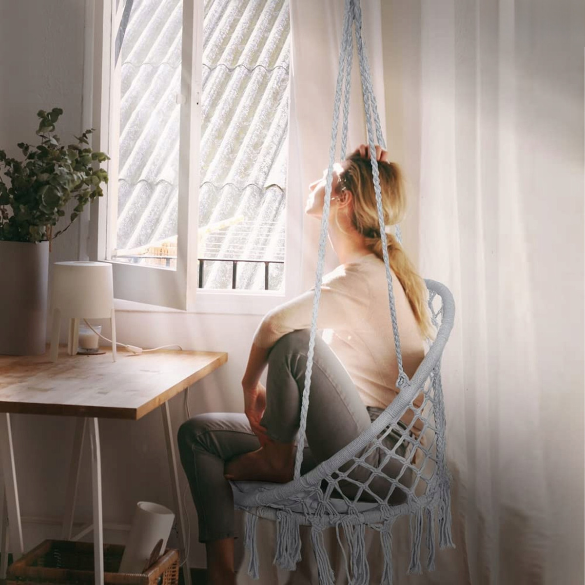 ✔️ Savienot kopā 2 stiprinājumus un nostiprināt tos kopā, tad šūpoles ļaus vieglu rotācijas kustību, piemērotu, piemēram, grāmatas lasīšanai.