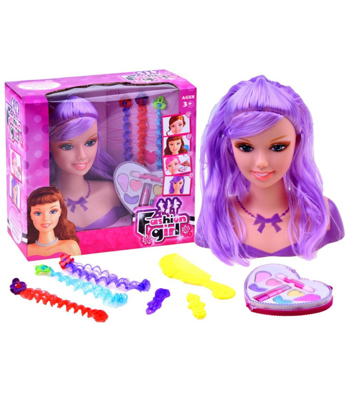 Pievilcīga galva ar modernu matu krāsu, kas ir ideāla frizieru apmācībai, skaistu frizūru veidošanai, sprādžu piestiprināšanai un zirgastes darināšanai. Tā būs lieliska dāvana mazajiem frizieru meistariem. Bērni bieži vien mīl spēlēties ar frizieriem, bet ne vienmēr ir modeļi, kas būtu gatavi eksperimentēt ar matiem. Tāpēc piedāvājam šo stilizācijas galvu ar daudzām aksesuāriem treniņiem un dekorēšanai.