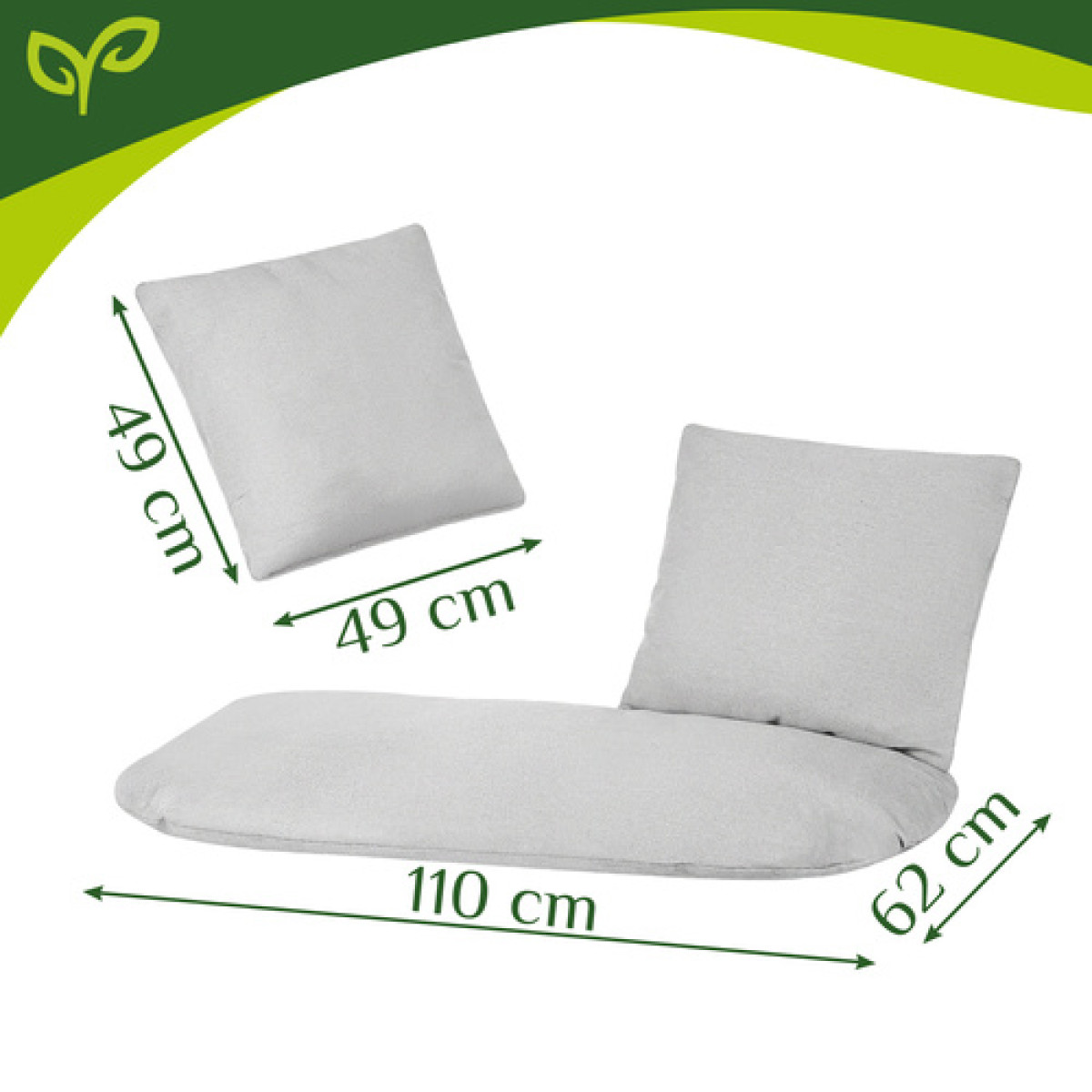 - Sēdvietas spilvens: 110 x 62 x 12 cm