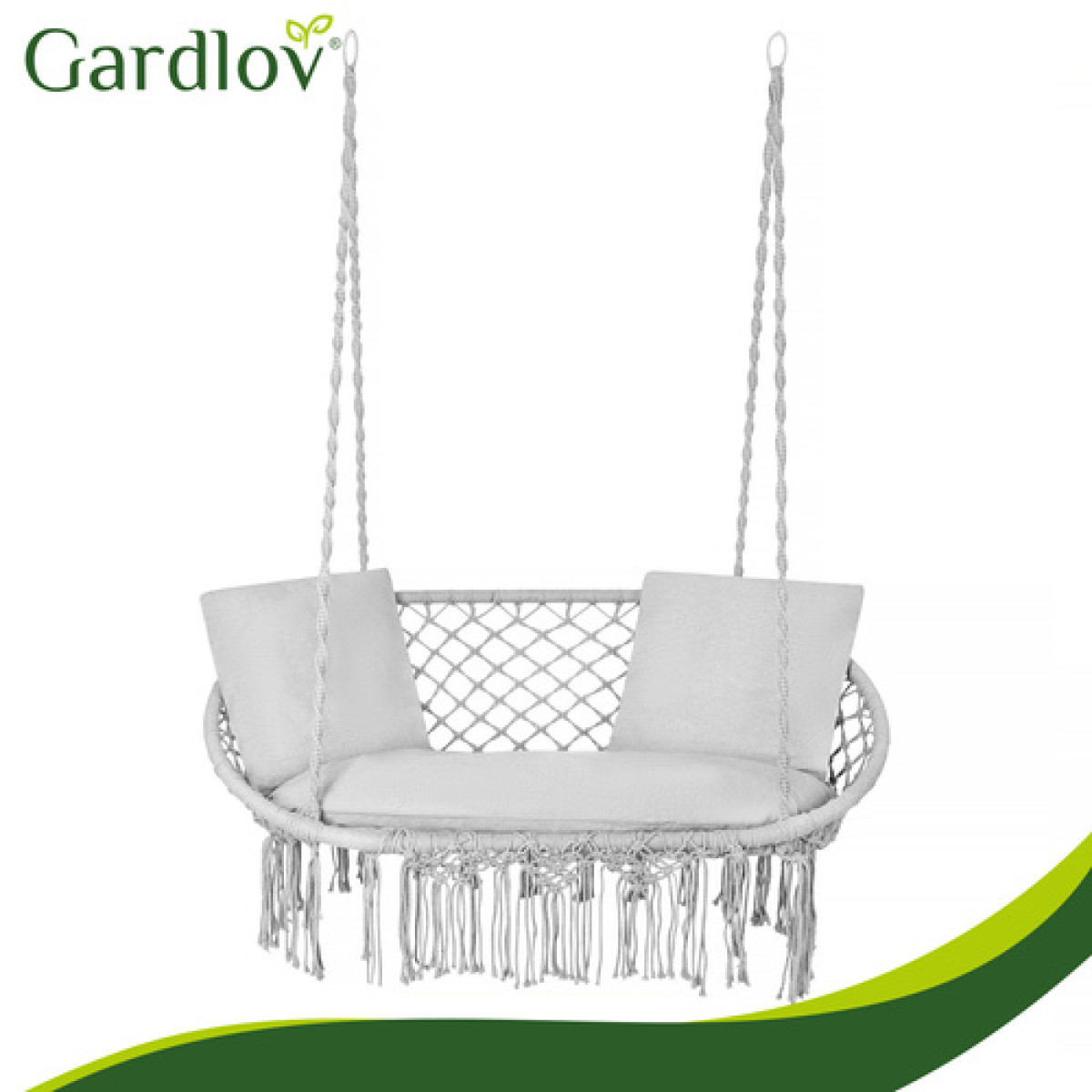 - Komplekts ar 3 vienībām - sēdvieta + 2 mīksti spilventiņi - nodrošina ērtu muguras un galvas atbalstu, tādējādi padarot šūpošanās atpūtu vēl komfortablāku.