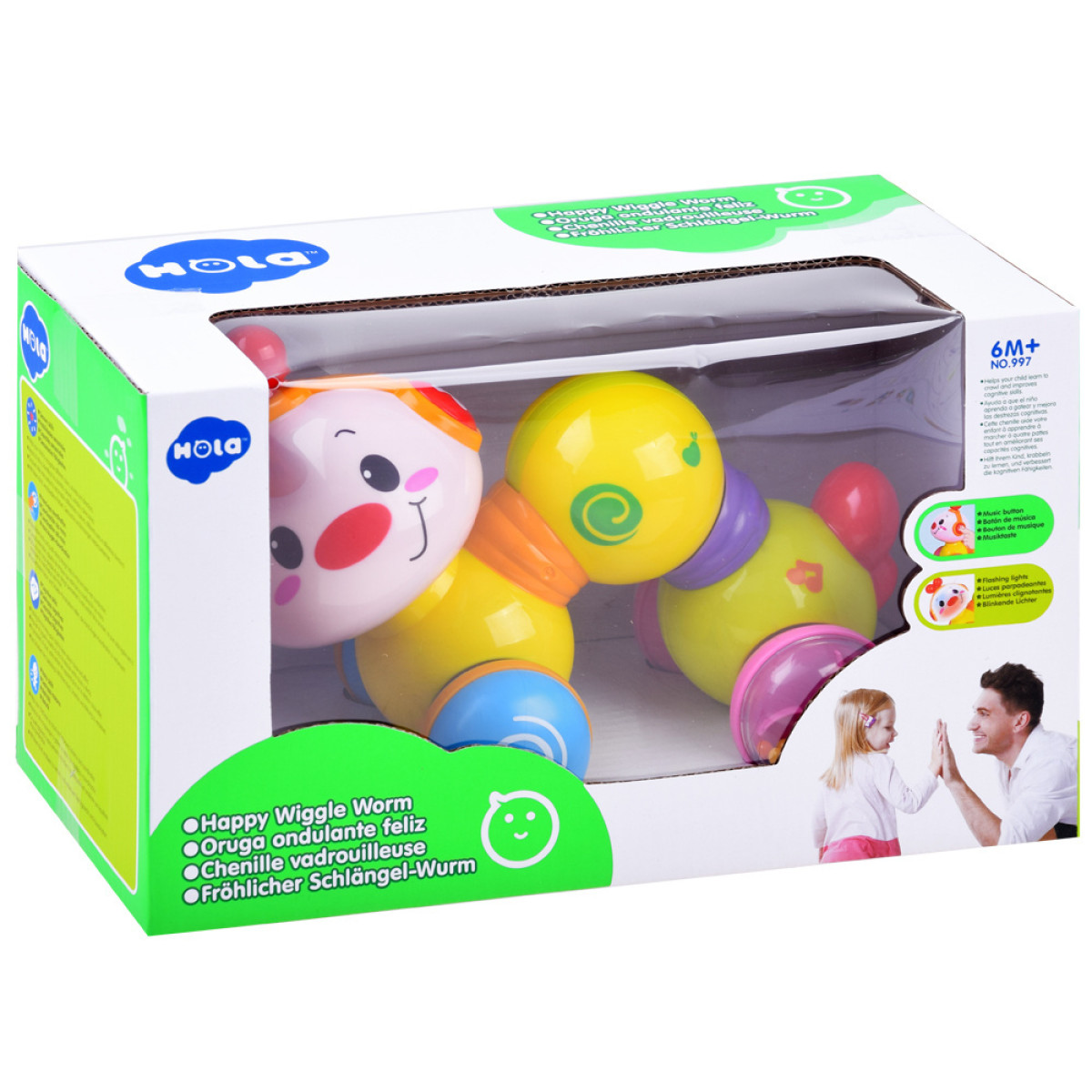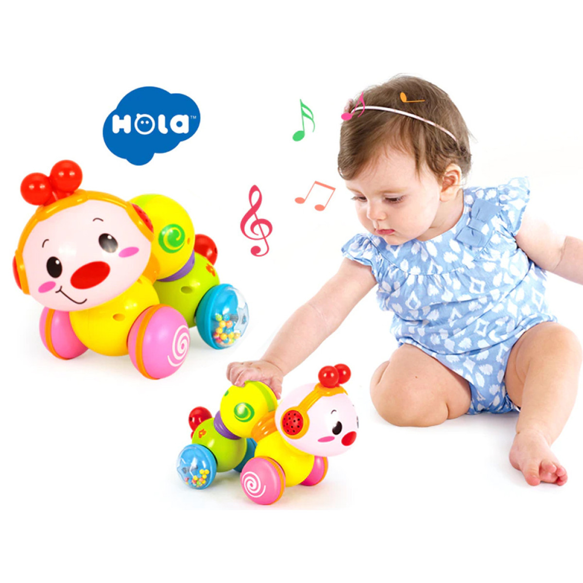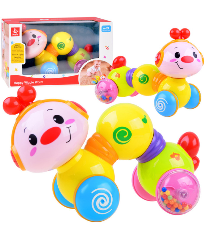 Aizraujoša darbība un jautri skaņas efekti aicina bērnu sekot rotaļlietai un uzdrošināties rāpot arvien drosmīgāk.