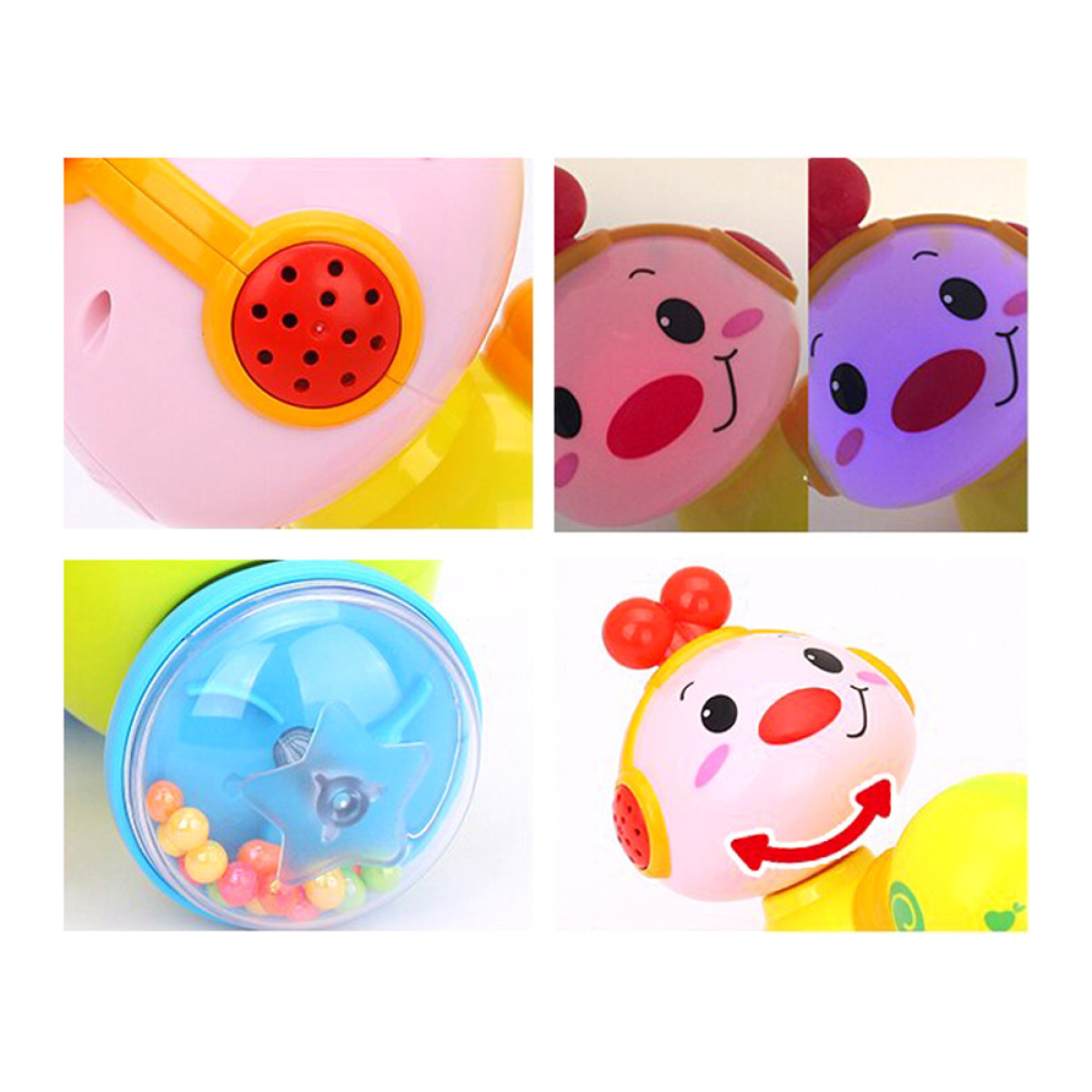Spēles laikā rotaļlietas galva maina krāsas un spīd. Kāpuriņa galva ir kustīga un to var pagriezt pa labi vai pa kreisi.