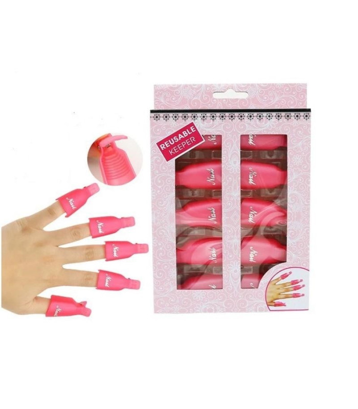 Ērti un ārkārtīgi praktiski atkārtoti lietojami manikīra klipši. Paredzēts profesionālai lietošanai un hibrīdlakas noņemšanai mājas apstākļos. Pateicoties izturīgajai plastmasai, skavas ir izturīgas pret kosmētisko laku acetonu. Lieliski piemērots hibrīdu, akrila, želeju noņemšanai, kā arī nagu pulēšanai un netīrumu noņemšanai.