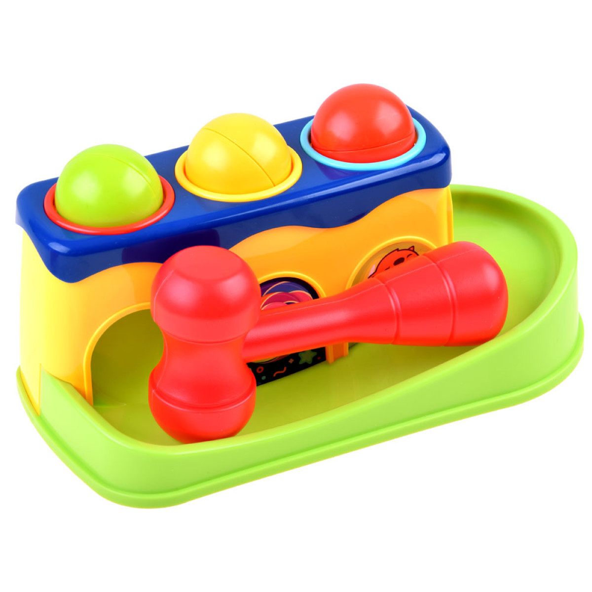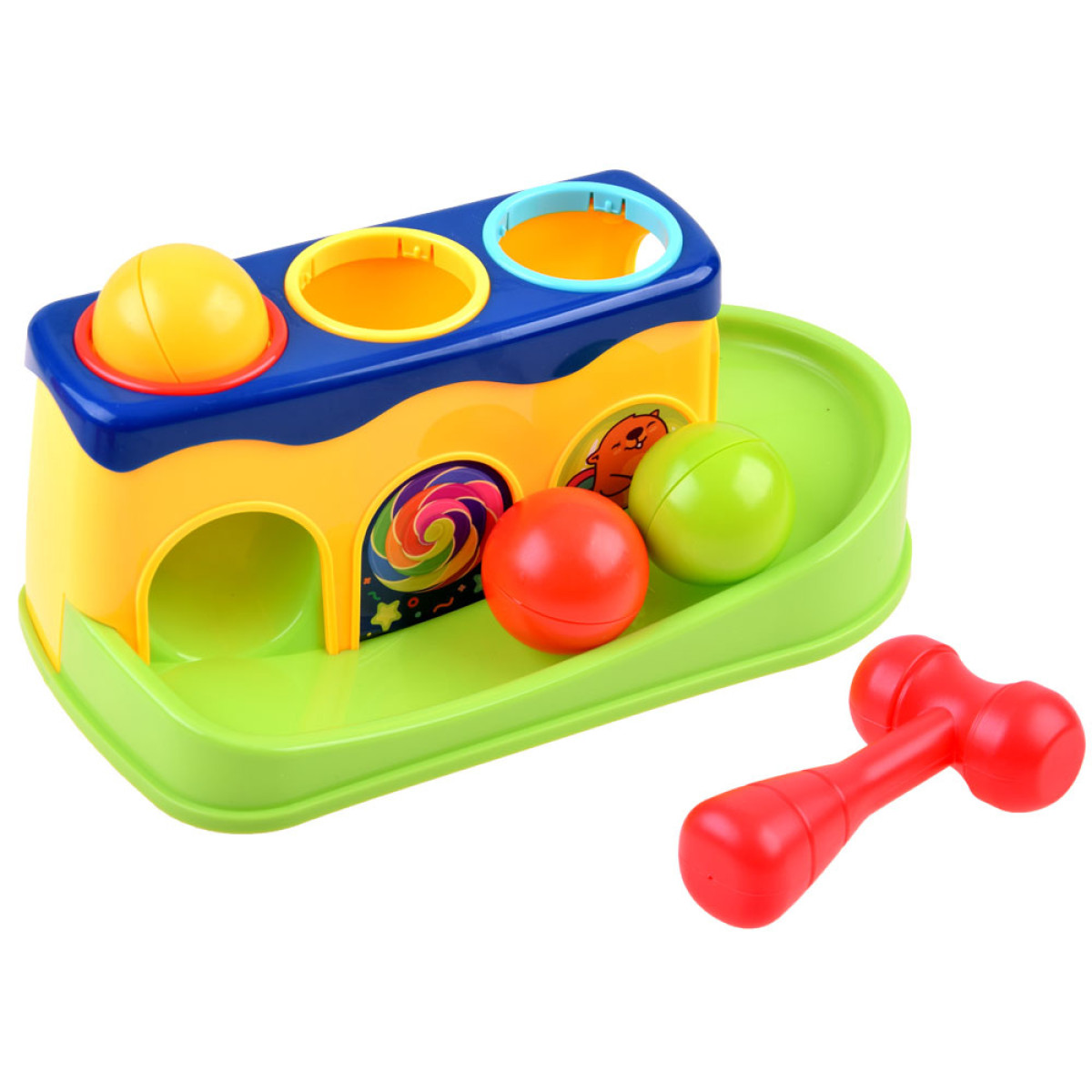Krāsainais rotaļlietu komplekts ar āmuru un bumbiņām