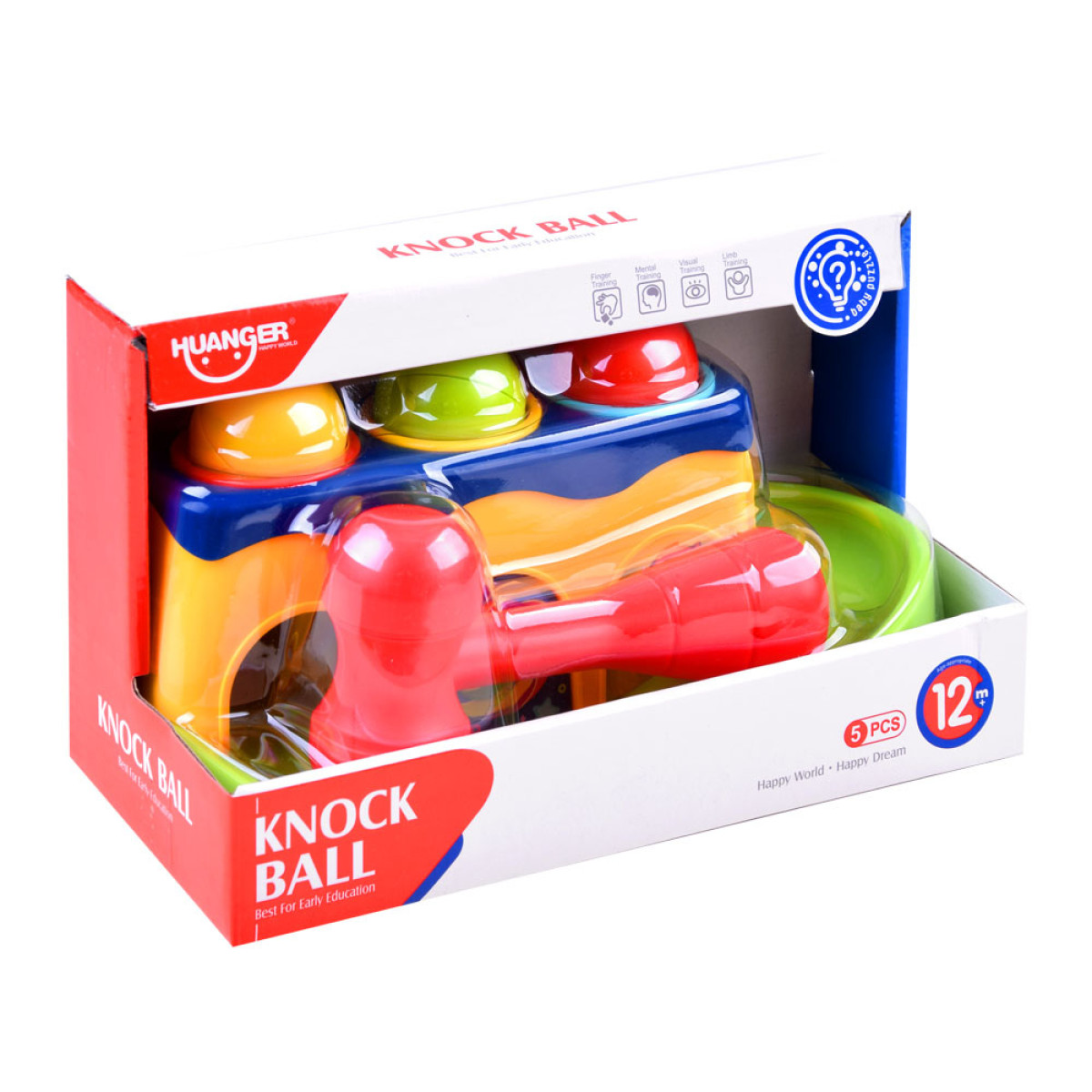 Interaktīva rotaļlieta bērniem, kas sastāv no āmura, statīva un 3 krāsainām bumbiņām. Spēle ietver sarkana āmura izmantošanu, lai trāpītu pa krāsainām bumbiņām, kuras atrodas atverēs, lai tās nokristu lejā un ripotu pa slidkalniņu.