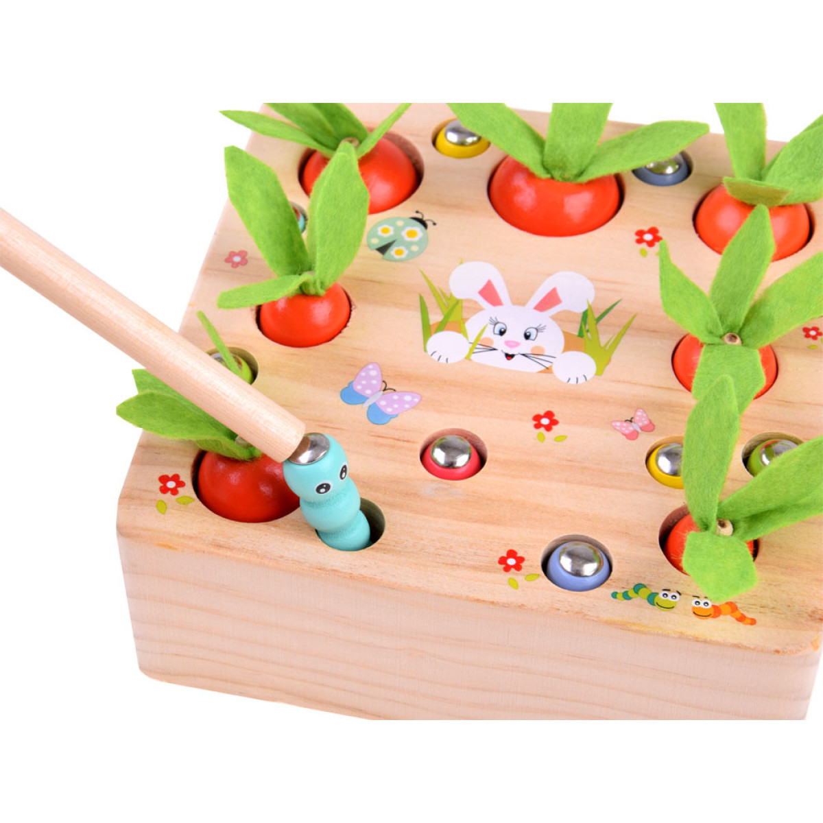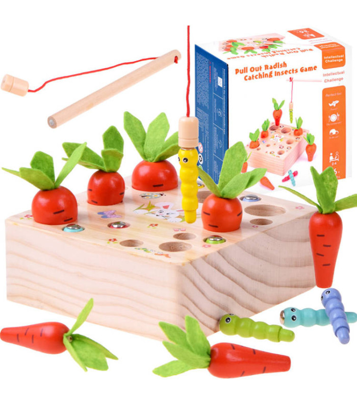 Koka spēle "Burkāni un Tārpi" ir rotaļlieta, kas paredzēta jaunākajiem bērniem. Spēle noteikti patiks katram bērnam, pateicoties jautrajām krāsām un skaistajai grafikai, kas piesaista uzmanību un mudina spēlēties. Pateicoties šai interesantajai spēlei, bērniem ir iespēja attīstīties un spēlēties dažādos veidos. Bērni var spēlēties paši vai kopā ar vienaudžiem.