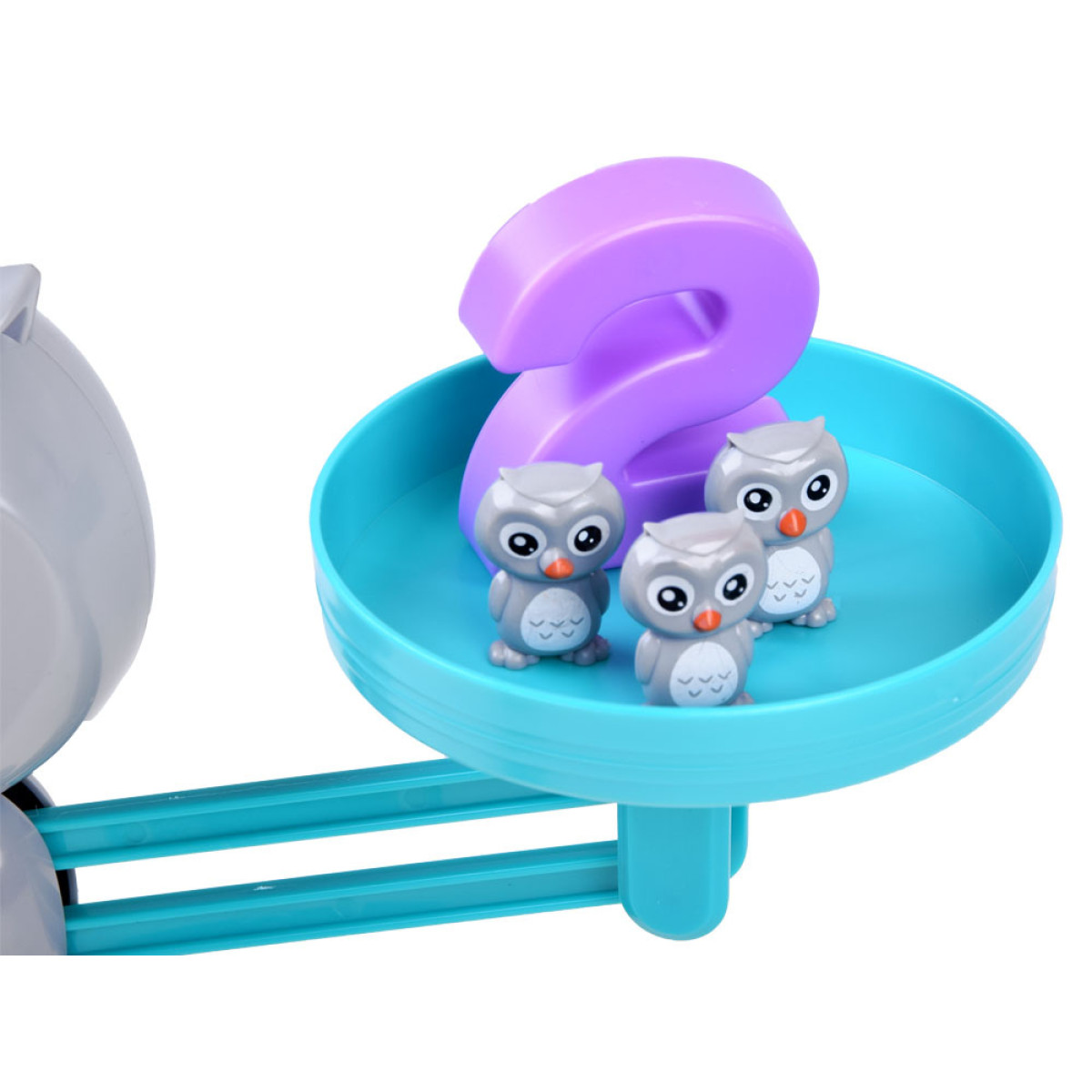 Redzēsiet skaitli un atbilstošu pūču skaitu. Atrodiet šo skaitli skaitļu kaudzē un novietojiet to vienā svara pusē. Tad saskaitiet tik pūču figūras un novietojiet tās otrā svara pusē.