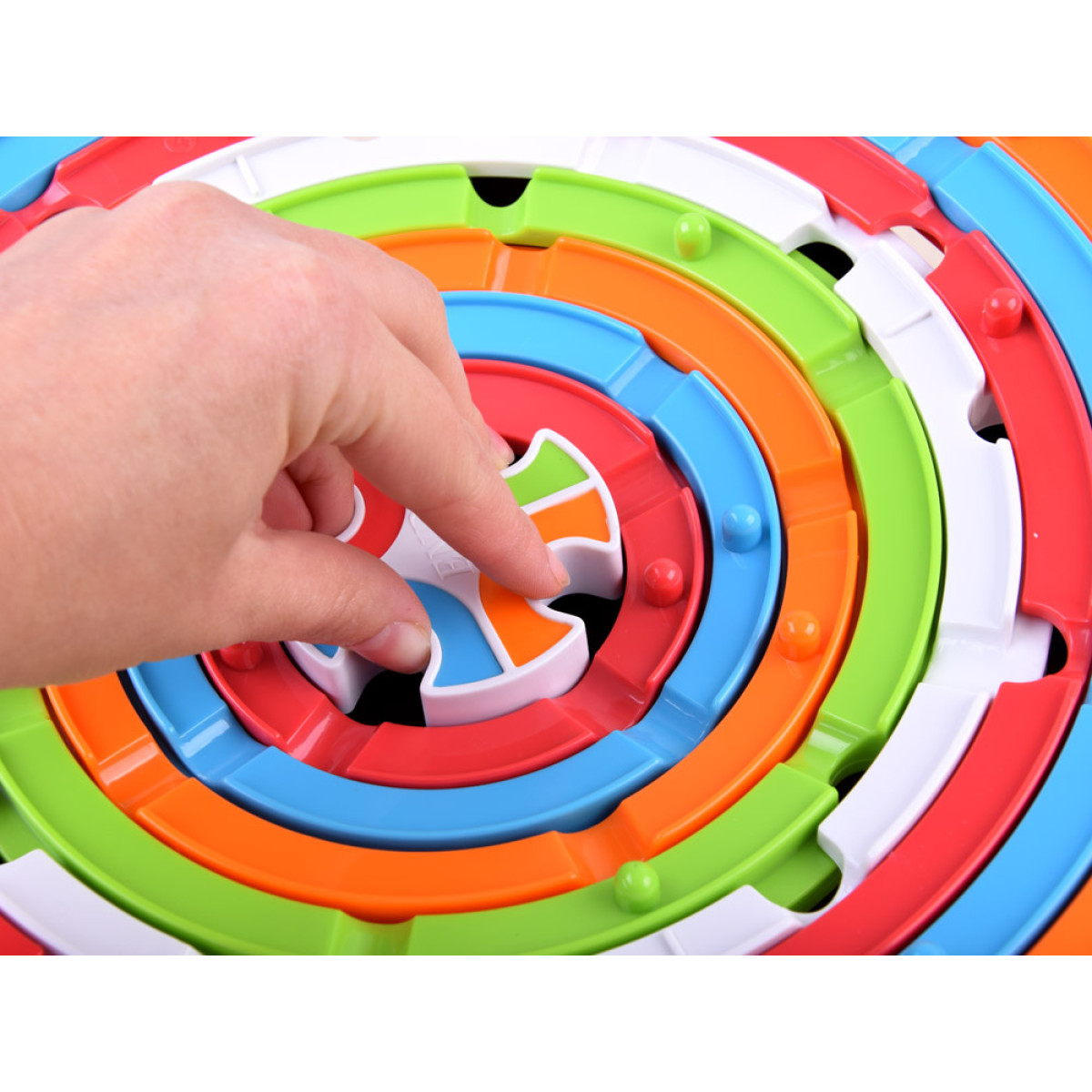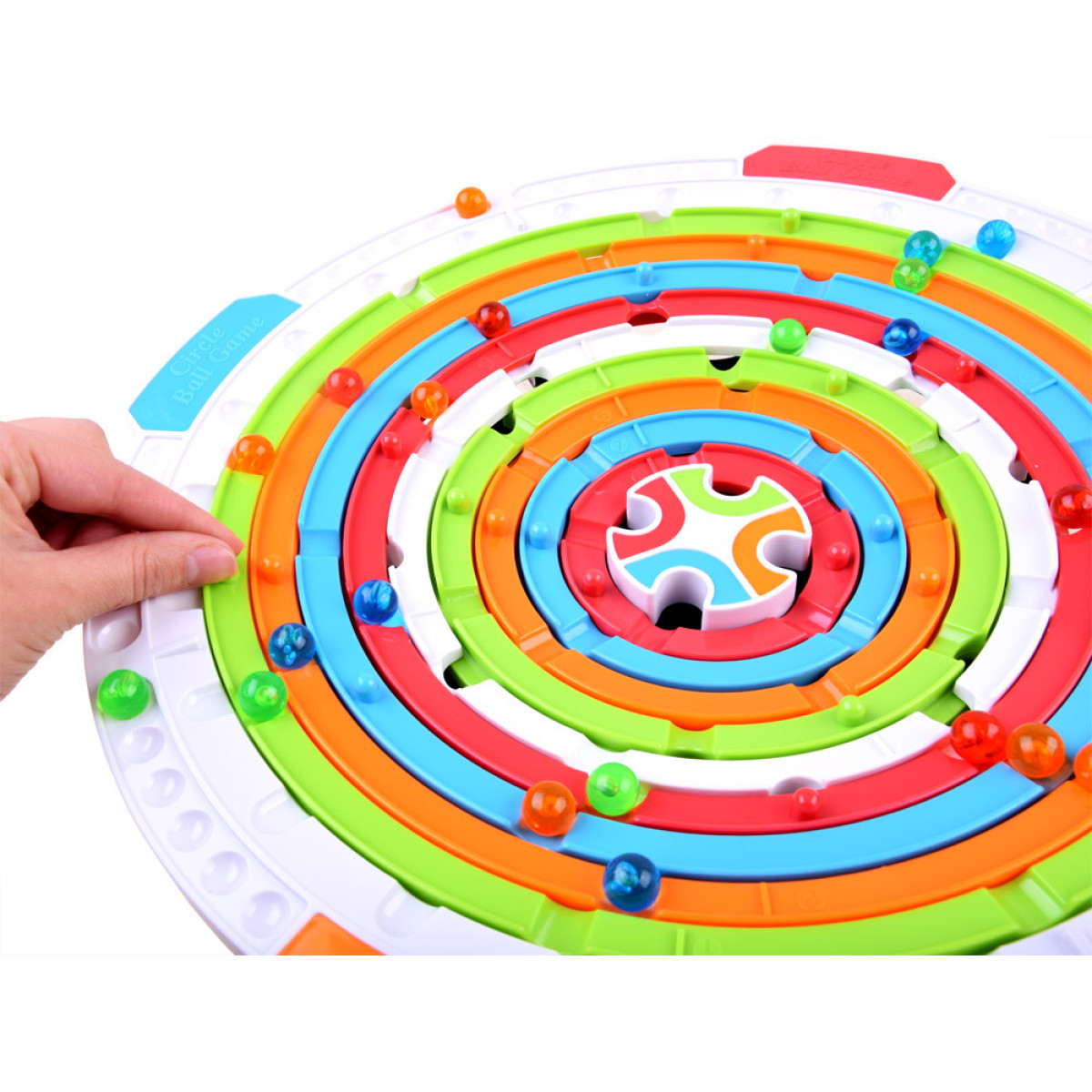 - Spēles gaita: Nosakiet spēlētāju secību. Katram dalībniekam jāpārvieto apļi, lai viņa bumbiņa nokļūtu caurumā, kas atzīmēts ar atbilstošu krāsu beigu lauciņā. Spēlētājs griež apli, līdz bumbiņa jebkurā krāsā nokrīt uz leju. Kad bumbiņa nokļūst zemākajā aplī, nekavējoties jāpārtrauc apļa pagriešana. Gājiena laikā nedrīkst mainīt apļa kustības virzienu. Pamatnes vidū ir balts apļveida slazds. Jābūt uzmanīgam, vedot bumbiņas cauri šai plansa daļai. Ja spēlētāja gājiens noved pie tā, ka viņa bumbiņa nokrīt slazdā, viņam tā jānovieto atpakaļ uz viena no sešiem sākuma lauciņiem. Ja spēlētājs ieliek pretinieka bumbiņu slazdā, viņš to pārņem un novieto savā punktu laukumā. Spēlētājs var pārvietot savas bumbiņas tikai tad, ja tās nokļūst beigu lauciņā atbilstošajā krāsā. Ja spēlētājs ieliek pretinieka bumbiņu caurumā, kas atbilst viņa bumbiņu krāsai, punktus saņem pretinieks.