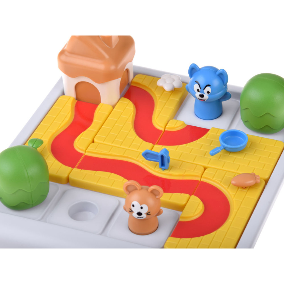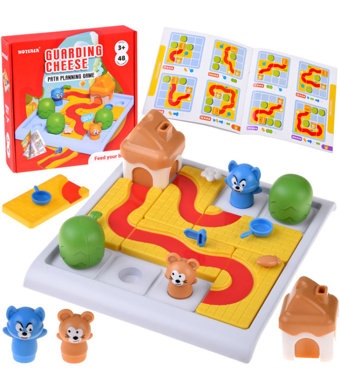 Galda spēle Takas - loģiskā mīkla bērniem, kas iesaista ceļu veidošanā un plānošanā uz spēles dēļa, lai novestu varoņus - peli un kaķi - līdz mājai-sieram.