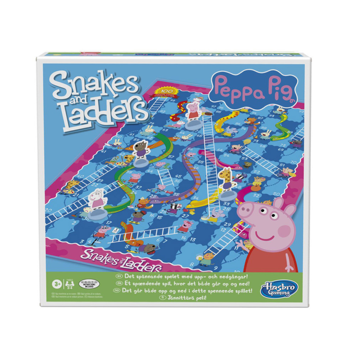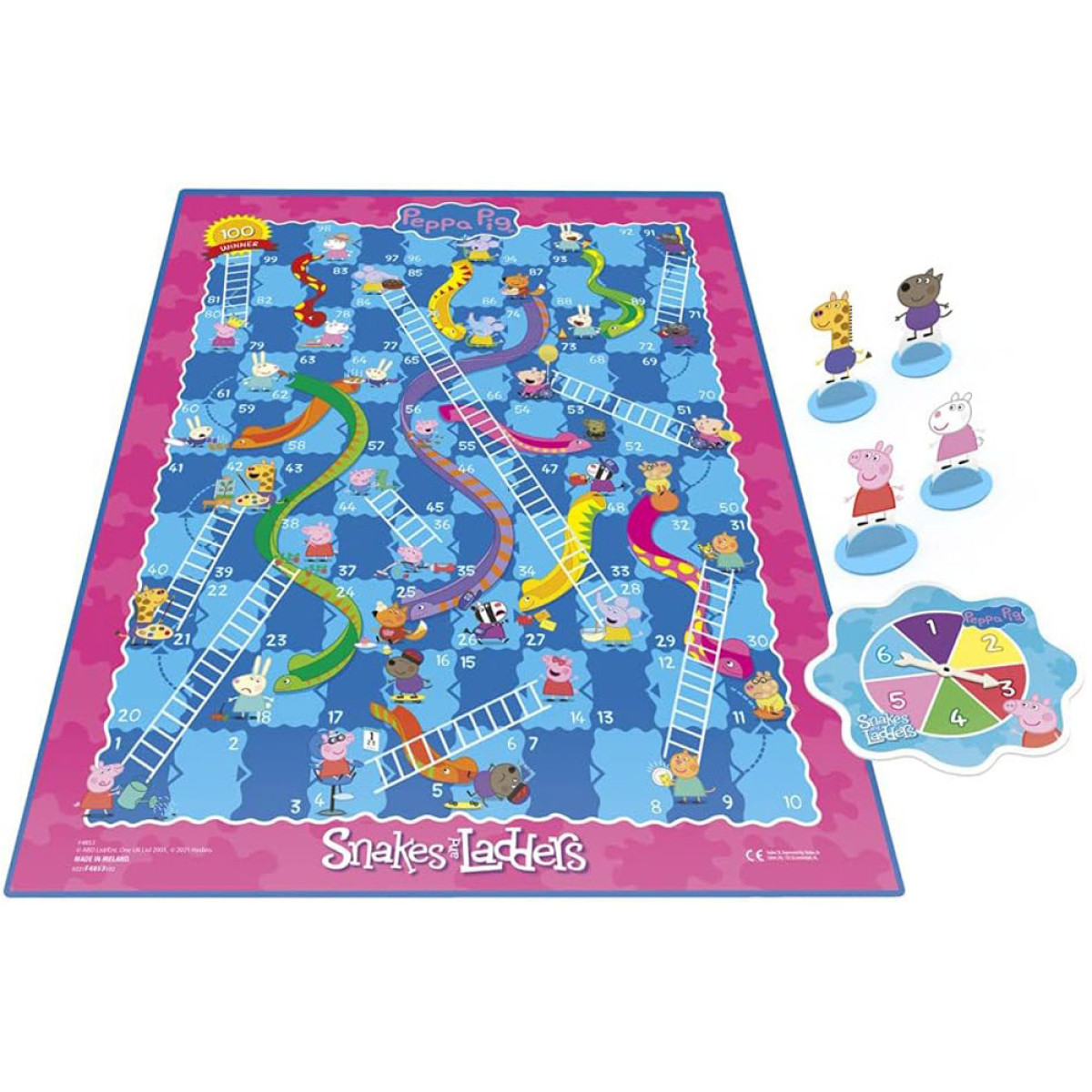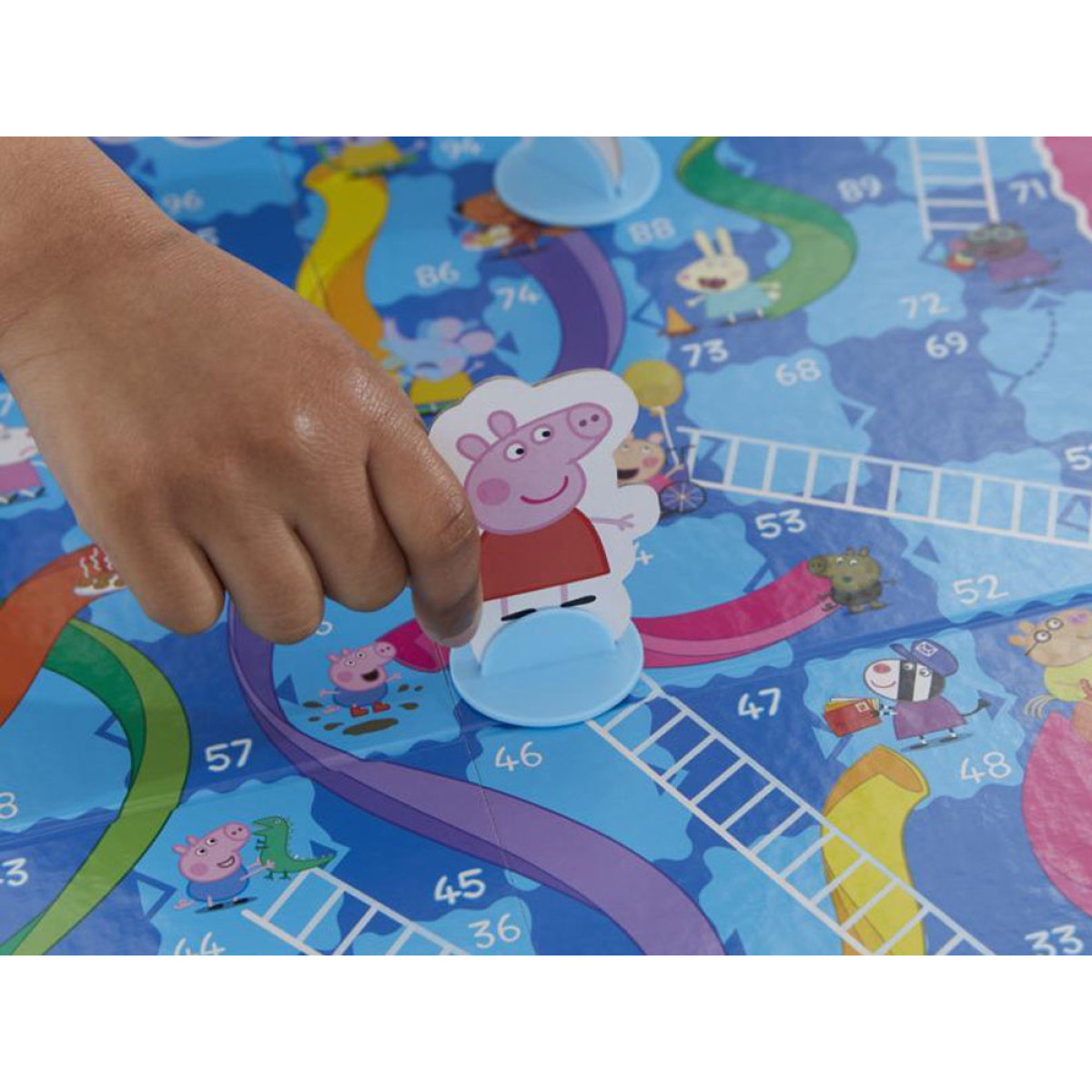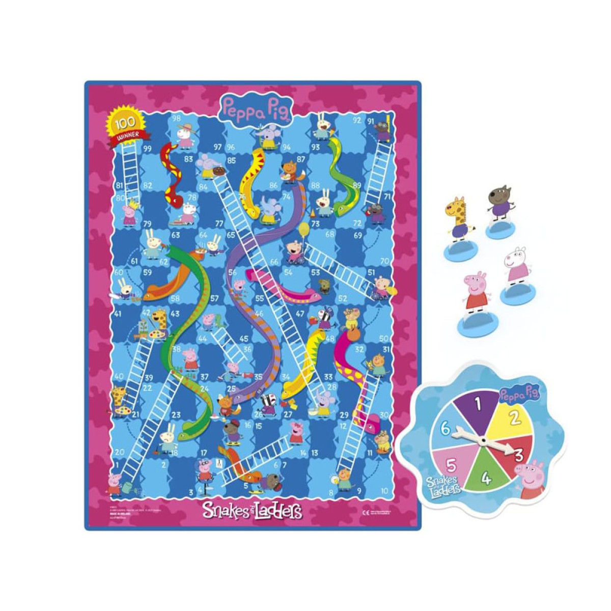 Spēlē "Kāpnes un čūskas" ar Peppa cūciņu spēlētāji sacenšas uz galda, cenšoties izvairīties no čūskām un izmantot kāpnes, lai izcīnītu uzvaru. Draudzīgs un krāsains dizains ar iemīļotās multfilmas varoņiem padarīs spēli vēl interesantāku mazajiem spēlētājiem. Spēle ne tikai izklaidē un priecē, bet arī attīsta prasmes, piemēram, skaitīšanu, stratēģisko domāšanu un novērošanas spējas.