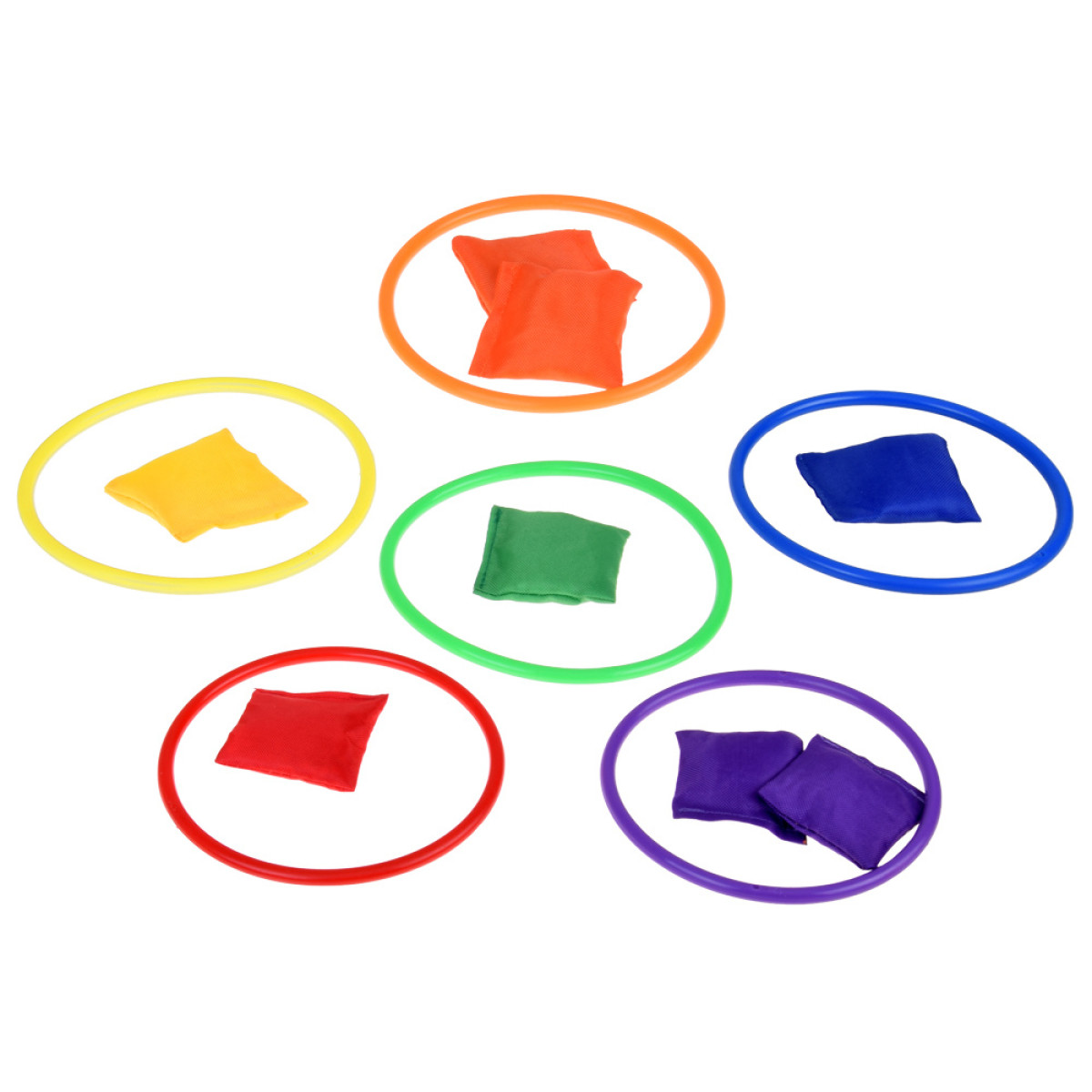 - 12 maisiņi ar pildījumu – piemēroti mest un precizitātes vingrinājumiem. Dažādas krāsas atvieglo punktu skaitu un sekošanu progresam.
