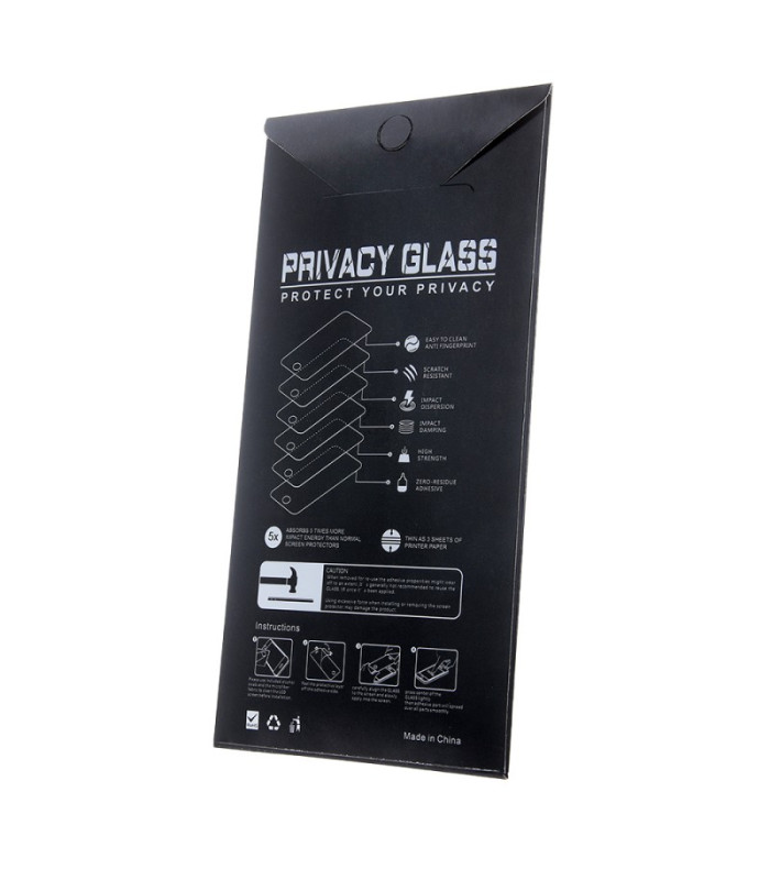 Privacy Glass yra grūdintas stiklas, kuris ne tik apsaugo jūsų telefono ekraną, bet ir užtikrina privatumą bei vartotojo patogumą. Privatumo didinimo technologija apriboja ekrano matomumą pašaliniams asmenims, todėl vartotojas gali būti tikras, kad žiūrimas turinys išlieka išskirtinis tik jiems. Dėl 9H kietumo stiklas puikiai apsaugo nuo įbrėžimų, smūgių ir įlenkimų, todėl yra ypač patvarus ir atsparus pažeidimams. Be to, oleofobinė danga sumažina pirštų atspaudų dėmes ant ekrano.