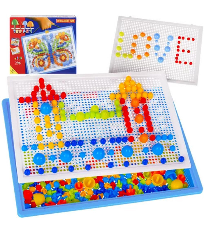- Mācīšanās iespējas – spēle ar mozaīku ir lielisks veids, kā attīstīt manuālās prasmes, veiklību, acu un roku koordināciju, kā arī praktizēt loģisko domāšanu. Bērni ar šo rotaļlietu trenē arī pacietību un koncentrāciju.