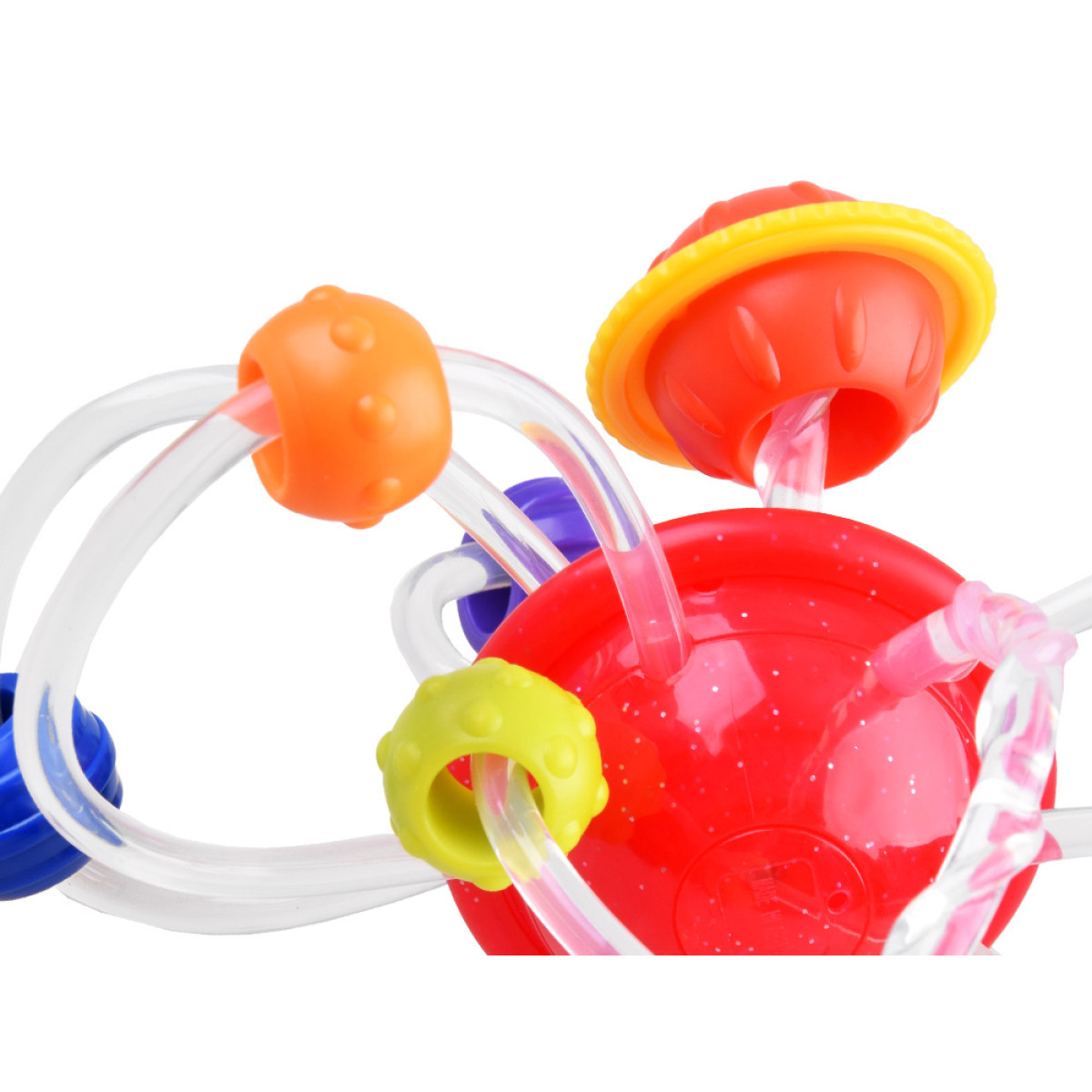 Rotaļlieta ir ļoti viegli tīrāma, pietiek to mazgāt siltā tekošā ūdenī. Veikals piedāvā plašu sensorisko rotaļlietu, kožļeņu, grabuļu izvēli zīdaiņiem.