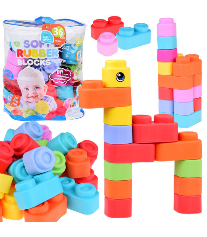 Gumijas krāsainie mīkstie klucīši 36 gabali bērniem ZA5367