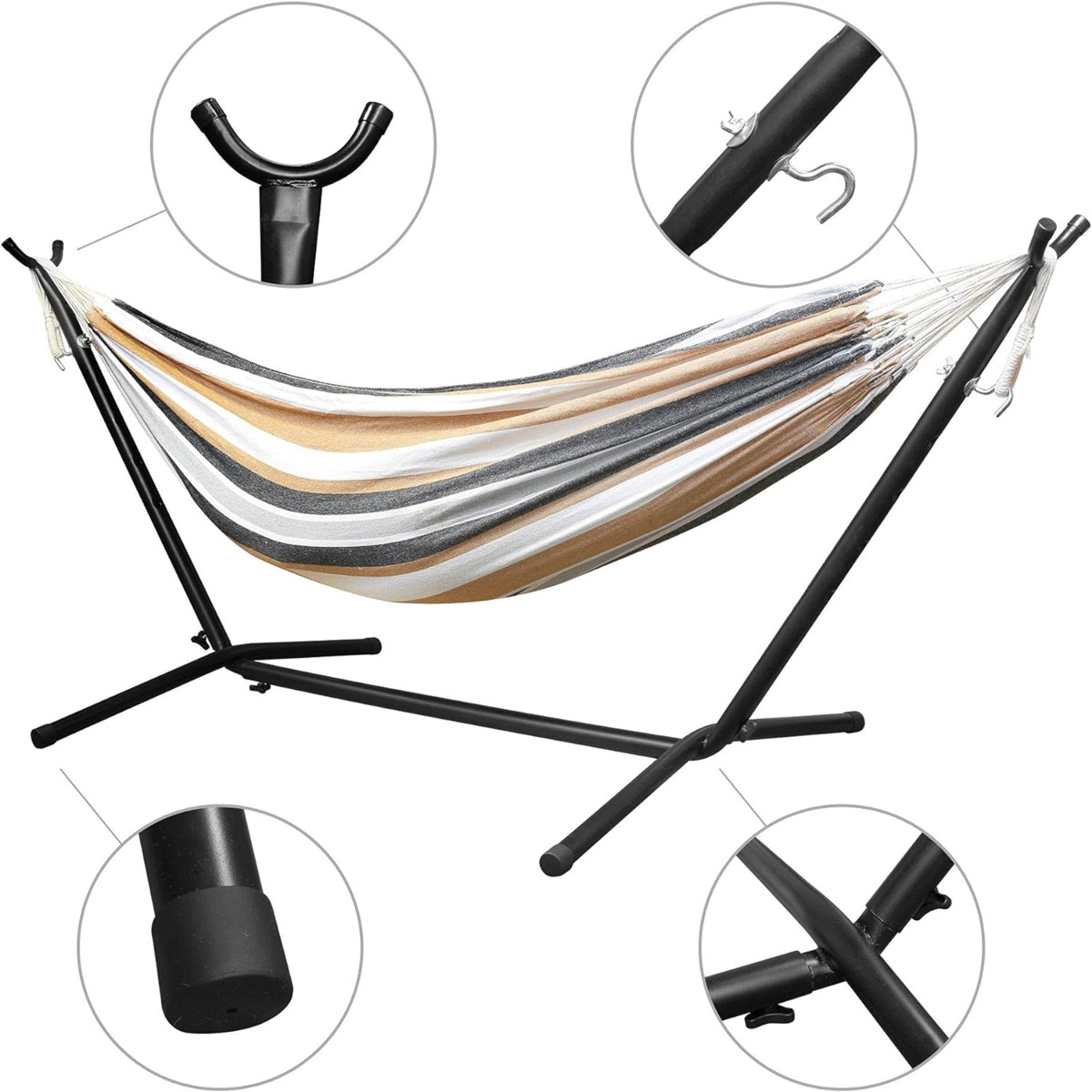 ✔️ Izturīgs un stabils ✔️ Augstākās kvalitātes materiāli ✔️ Stilīgs dizains ✔️ Viegla montāža ✔️ Šūpuļtīkla izmēri: 185 x 85 cm ✔️ Rāmja izmēri: 265 x 100 x 95 cm