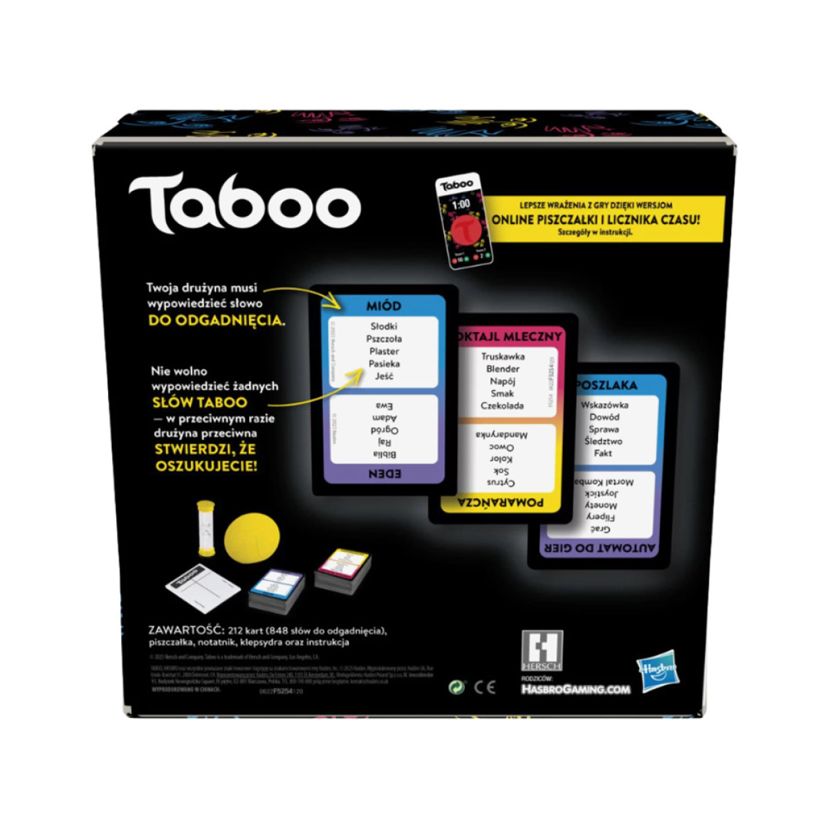 Jaunā, atjauninātā Taboo versija ietver kartīšu komplektu ar mūsdienīgām frāzēm, padarot spēli vēl smieklīgāku un aktuālāku. Vairāk nekā divsimt kartīšu un gandrīz astoņsimt piecdesmit vārdu garantē daudzas stundas aizraujošas izklaides un smieklu.