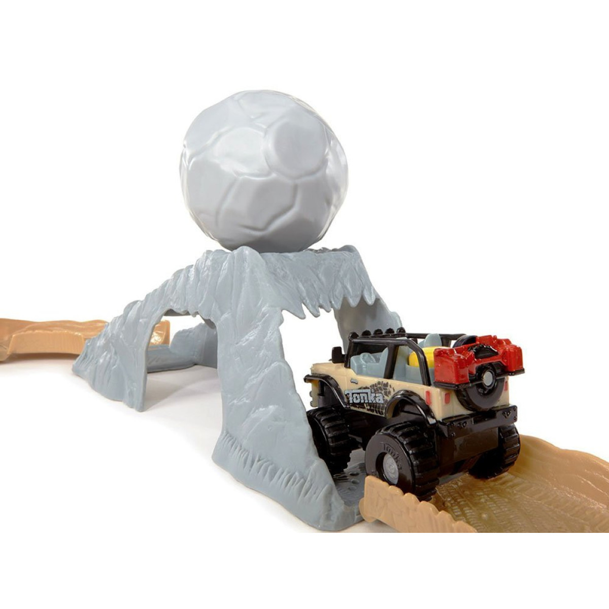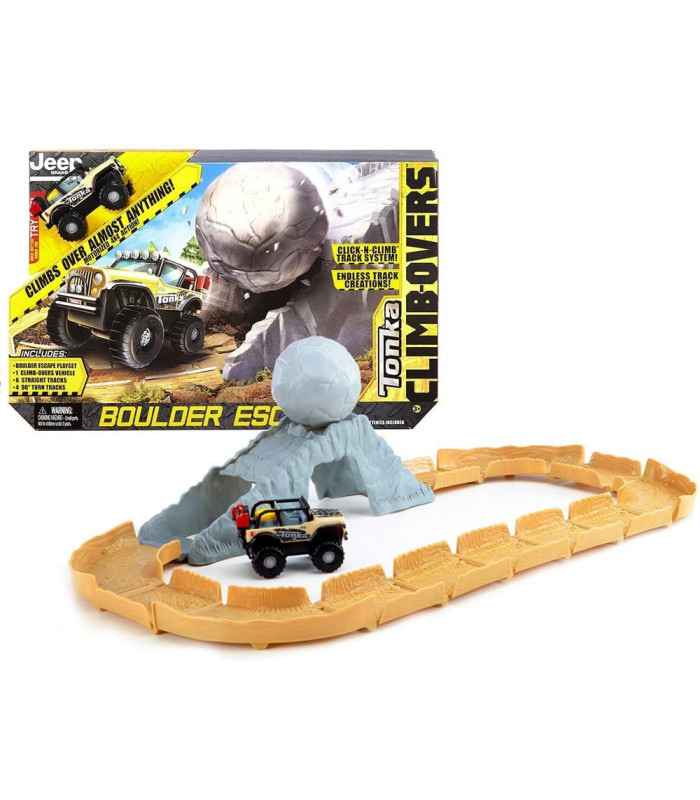 Tonka Boulder Escape trases komplekts ir lieliska rotaļlieta bērniem, kas mīl piedzīvojumu pilnas spēles. Komplektā ietilpst trase, džips, uzbrauktuve un liela bumba. Automašīna darbojas ar divām AAA baterijām, un pēc pogas nospiešanas un bloķēšanas noņemšanas, tā sāk patstāvīgi braukt un pārvarēt šķēršļus.