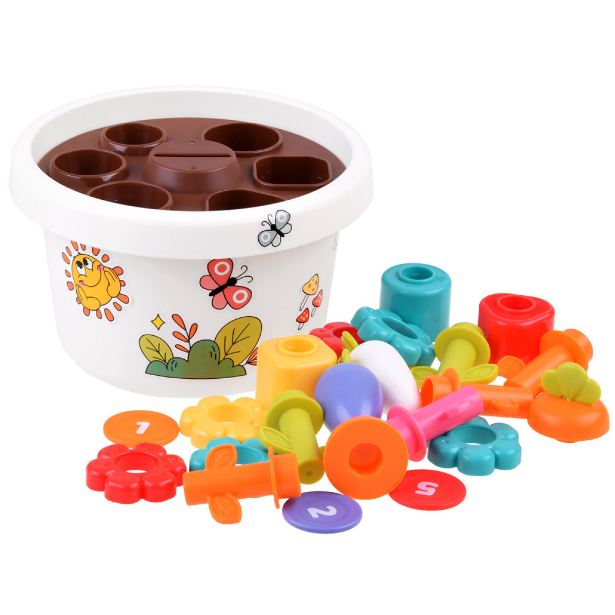 Komplektā ietilpst 3 burkāni, kuriem galos ir magnēti. Divus no tiem var atdalīt, tādējādi apakšdaļa kalpo ziedu torņa būvei, savukārt burkāna augšdaļa var tikt izmantota piramīdas noslēgšanai un dekorēšanai. Krāsainie elementi ļauj bērnam apgūt pamata krāsas un formas.