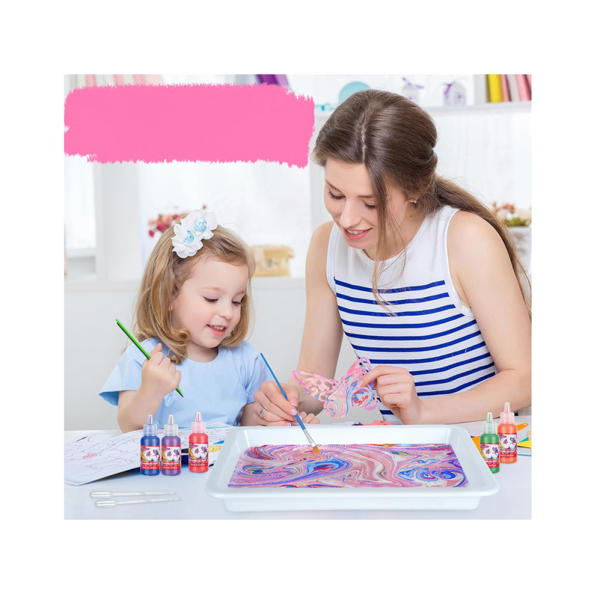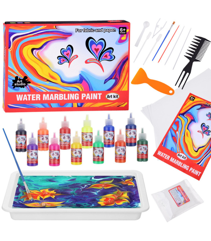 Ebru, ko dēvē arī par marmorēšanu, ir sena turku papīra un citu materiālu dekorēšanas tehnika. Raksti tiek veidoti uz īpaši sabiezināta ūdens virsmas, izmantojot krāsas un īpašus instrumentus, un pēc tam pārnesti uz papīru. Šis radošais komplekts ļauj patstāvīgi radīt abstraktus darbus, izpaust sevi un attīstīt māksliniecisko izjūtu.