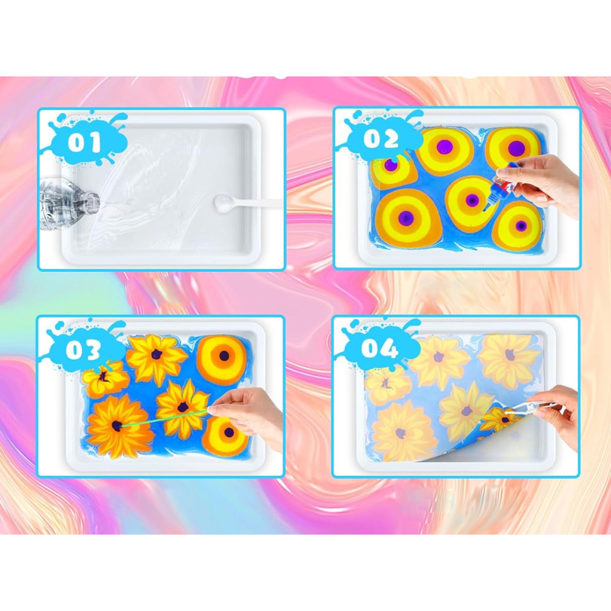 Krāsošana uz ūdens palīdz nomierināties, koncentrēties un izteikt emocijas ar rakstiem un krāsām. Tas ir lielisks veids, kā pavadīt laiku radoši un radīt unikālus mākslas darbus.