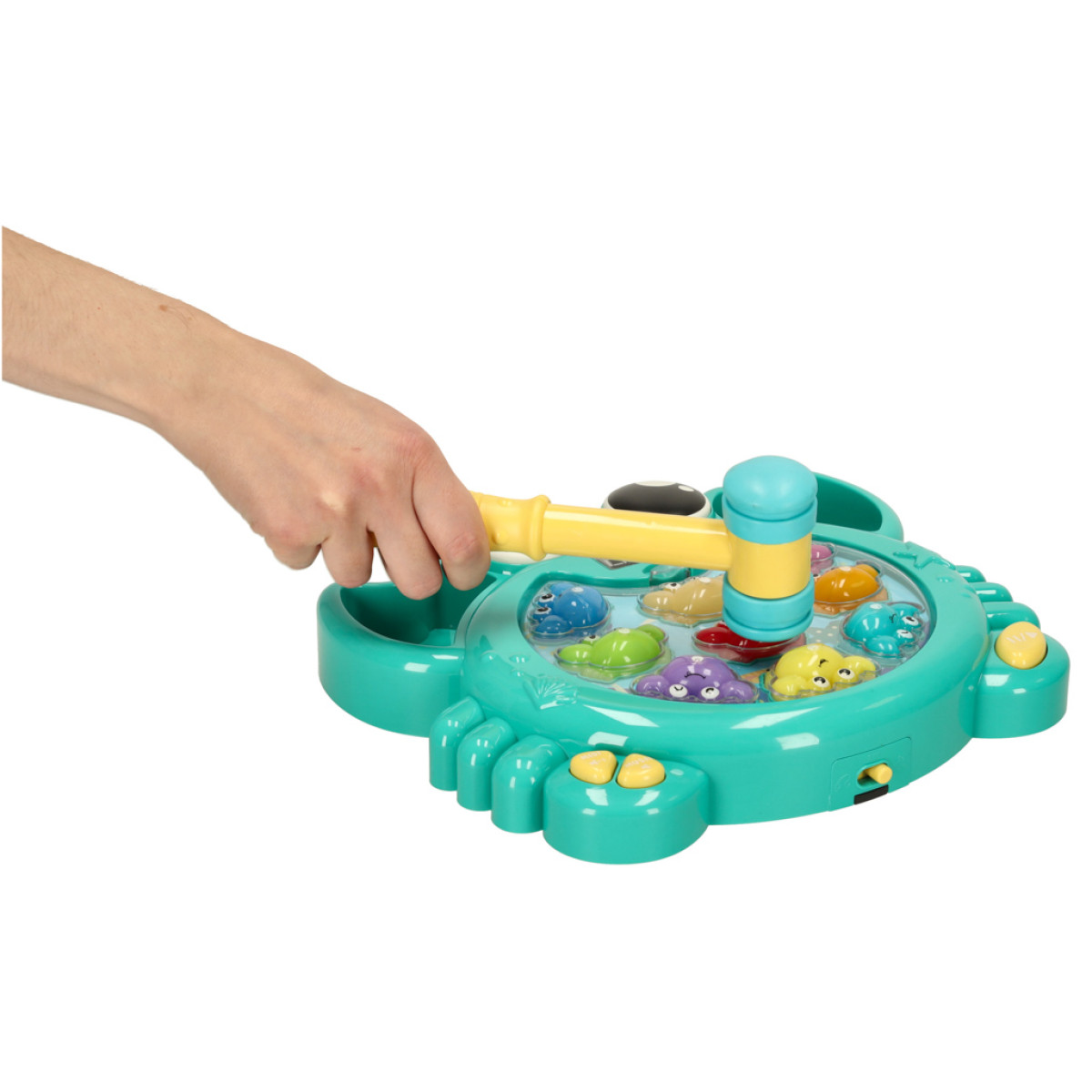 Divu spēļu izvēle: krabju uzsišana ar āmuru un zvejošana ar makšķeri. Abas aktivitātes veicina manuālo prasmju, smalkās motorikas un roku-acu koordinācijas attīstību, kas ir svarīgas bērna dzīves pirmajos gados. Tās palīdz bērnam attīstīt precīzas kustības un uzlabot savas prasmes.