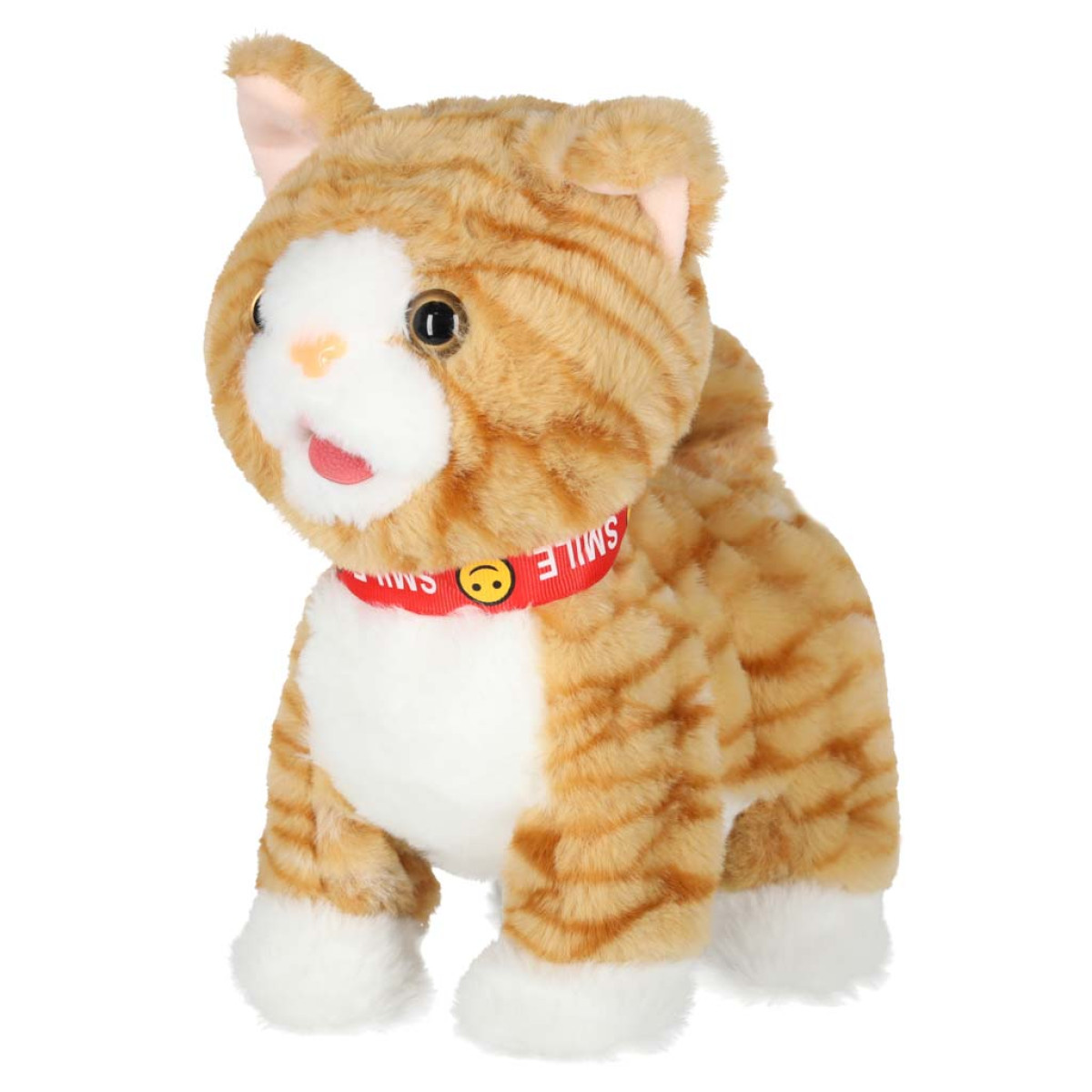 - Kaķis staigā un spēlē dziesmas – nospiežot pogu uz pavadas, kaķis sāk kustēties, atskaņojot dziesmas angļu valodā.