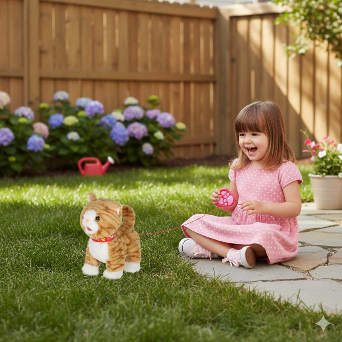 - Plīša mājdzīvnieks bērniem no 3 gadu vecuma – kaķis uz pavadas palīdz bērniem saprast, kā rūpēties par mājdzīvniekiem.