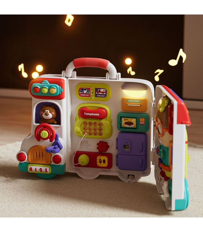Šis koferis ir mobilais attīstības centrs, kas aug kopā ar bērnu. Pilns uzdevumu, krāsu un skaņu, tas aizrauj ilgi, un tā koferveida forma mudina uz nēsāšanu, atvēršanu un atklāšanu no jauna. Tas ir izglītības un spēles savienojums, kas padara to, ka bērns ne tikai spēlējas - viņš patiešām mācās par pasauli.